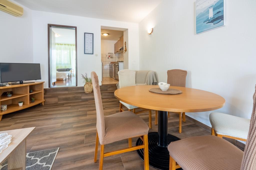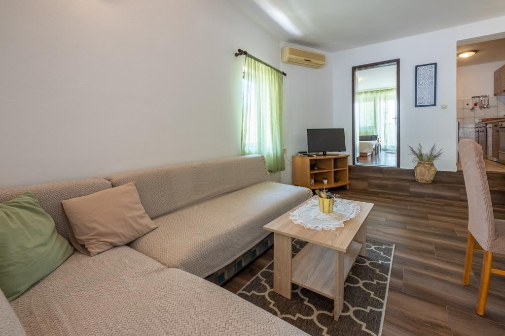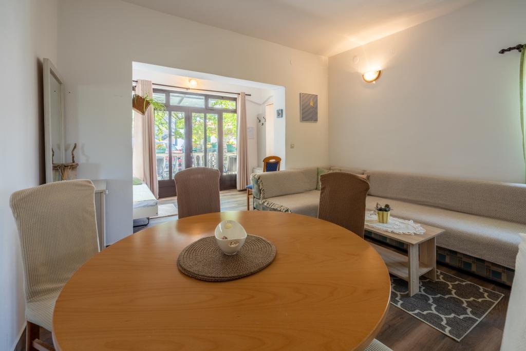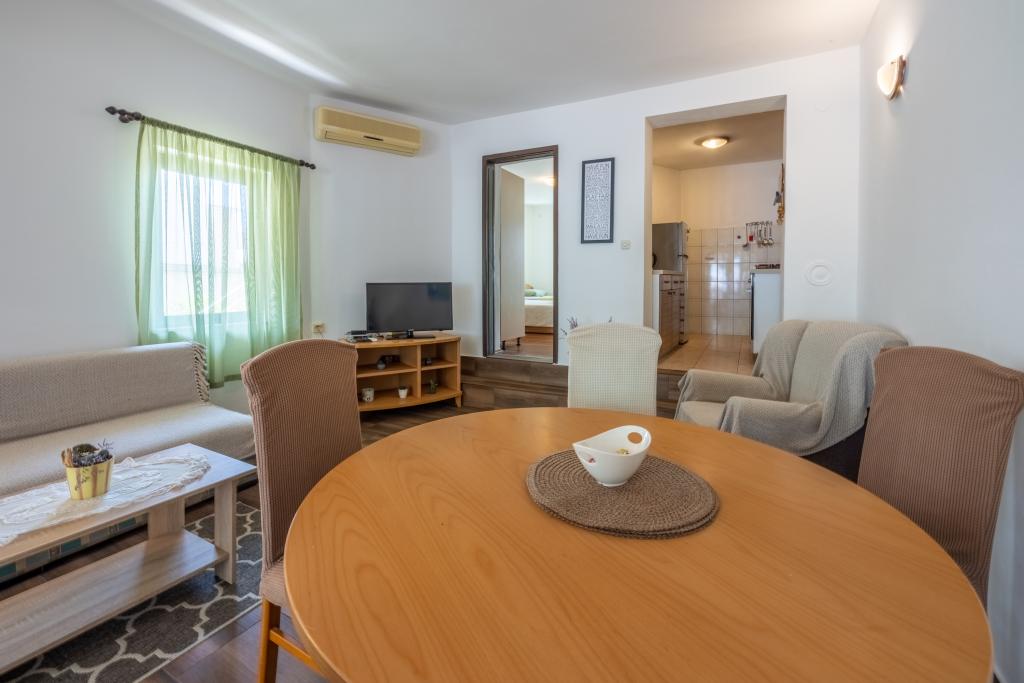 Appartement met airconditioning en 2 balkons, in een rustige afgelegen straat, gelegen in een klein vissersdorpje Jadranovo. Het appartement heeft een tuin, barbecueplaats, evenals WI FI en parkeergelegenheid. Het appartement heeft twee balkons of terrassen, 1 slaapkamer, woonkamer, keuken en toilet. U loopt in 10 minuten naar het dichtstbijzijnde strand en in 15 minuten naar het andere. Het tweede strand is ook met de auto in 2 minuten te bereiken en u heeft gratis parkeergelegenheid direct aan het strand.