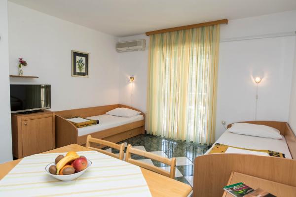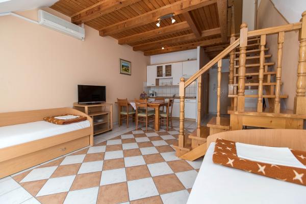 Mooie sfeer, netjes appartement, vriendelijke gastheren, het strand is een beetje verder, als je kiest met kleine stenen, en als je tussen de boten wilt zwemmen, dan is het ongeveer 800 m