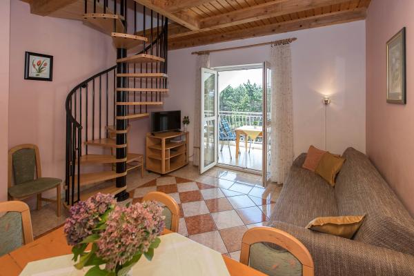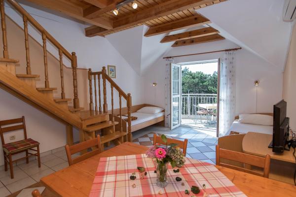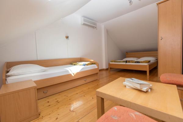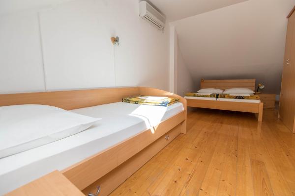 De accommodatie is erg goed, de dame let op alles, maar we kwamen eerder thuis omdat er op onze derde dag twee gezinnen arriveerden. De dageraad ging om 12 uur 's nachts over onze hoofden, ze renden, sprongen, trokken aan de stoel, waardoor het onmogelijk was om te slapen. We spraken 's ochtends met de huisvrouw, zei hij tegen hen. De volgende dag ging het feest weer door. Nogmaals, we vroegen de gastheer gemeten niets te doen. Hij heeft het niet opgelost, maar hij geeft je geen geld terug als we naar huis gaan. Daarna kwamen we thuis. Ik zou iets voorstellen. In Njivice stond het in hoofdletters in de gang tot 22-08 we vragen om stilte. we gaan hier om te rusten. Trouwens, we boekten de eerste verdieping, kregen een begane grond en hadden twee dagen een sterke sigarettengeur in de accommodatie.