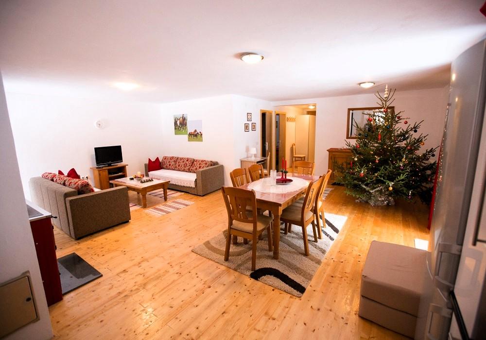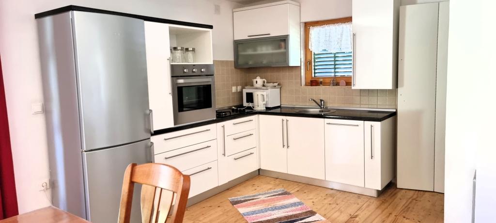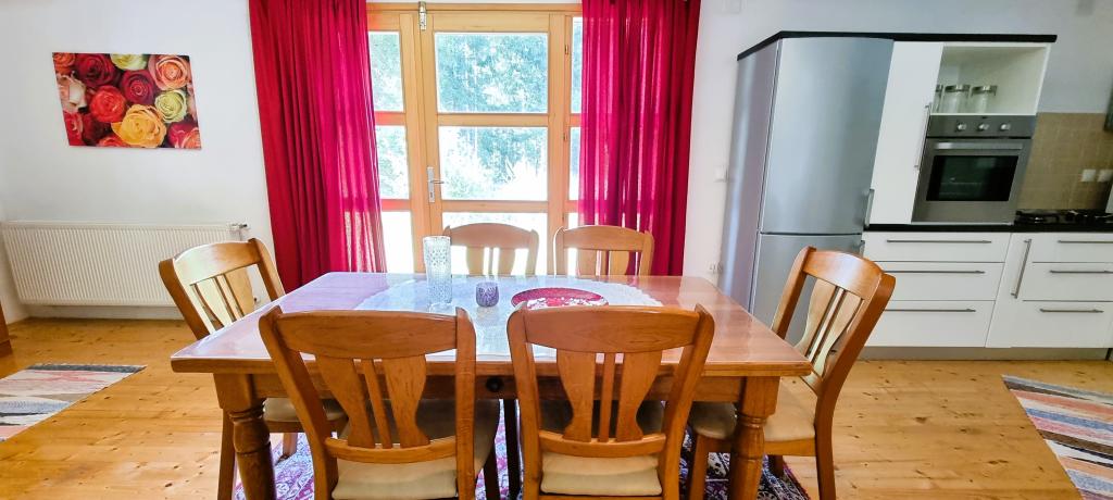 In de prachtige natuur direct naast het bos, een comfortabel appartement voor wie even wil ontsnappen aan de drukte en wil ontspannen in de natuur. U kunt gebruikmaken van een overdekte barbecue met een tafel, stoelen en houten schommels.