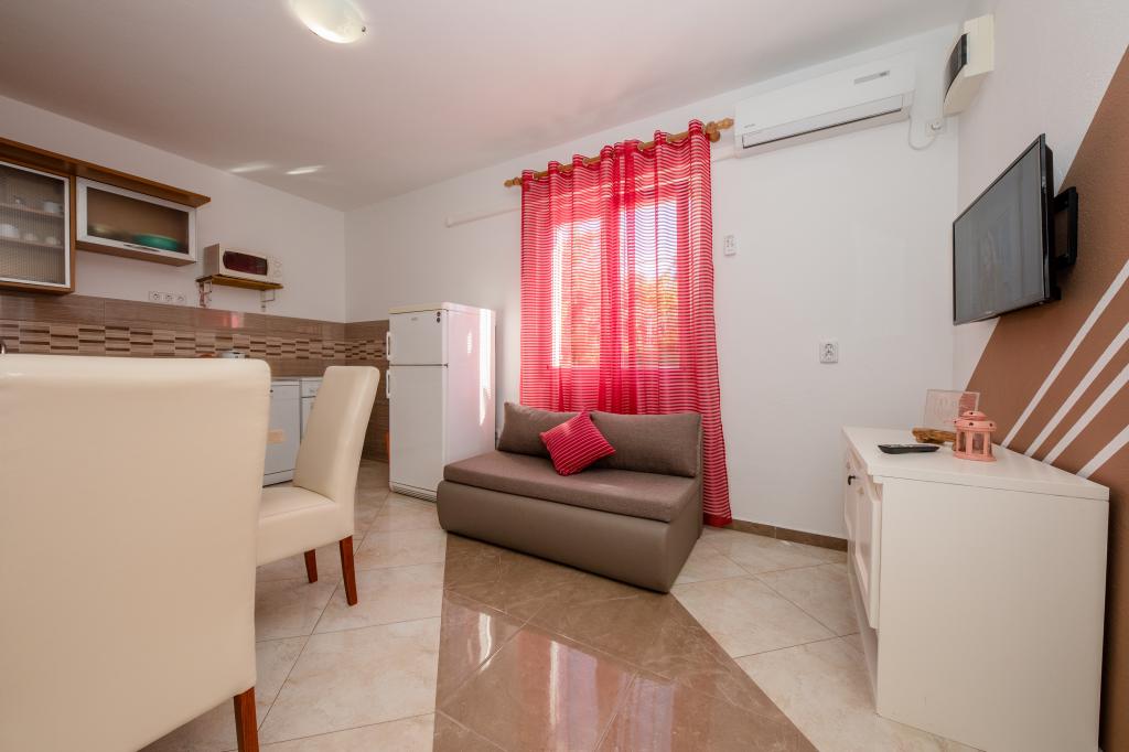 Rustig, schoon. Prachtig uitzicht op de zee. Danijela is erg vriendelijk en aardig. Goed uitgeruste keuken. Mogelijkheid om te grillen en buiten te zitten. Geschikt voor gezinnen met kleine kinderen. Dichtbij een ondiep zandstrand.