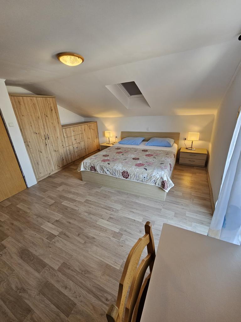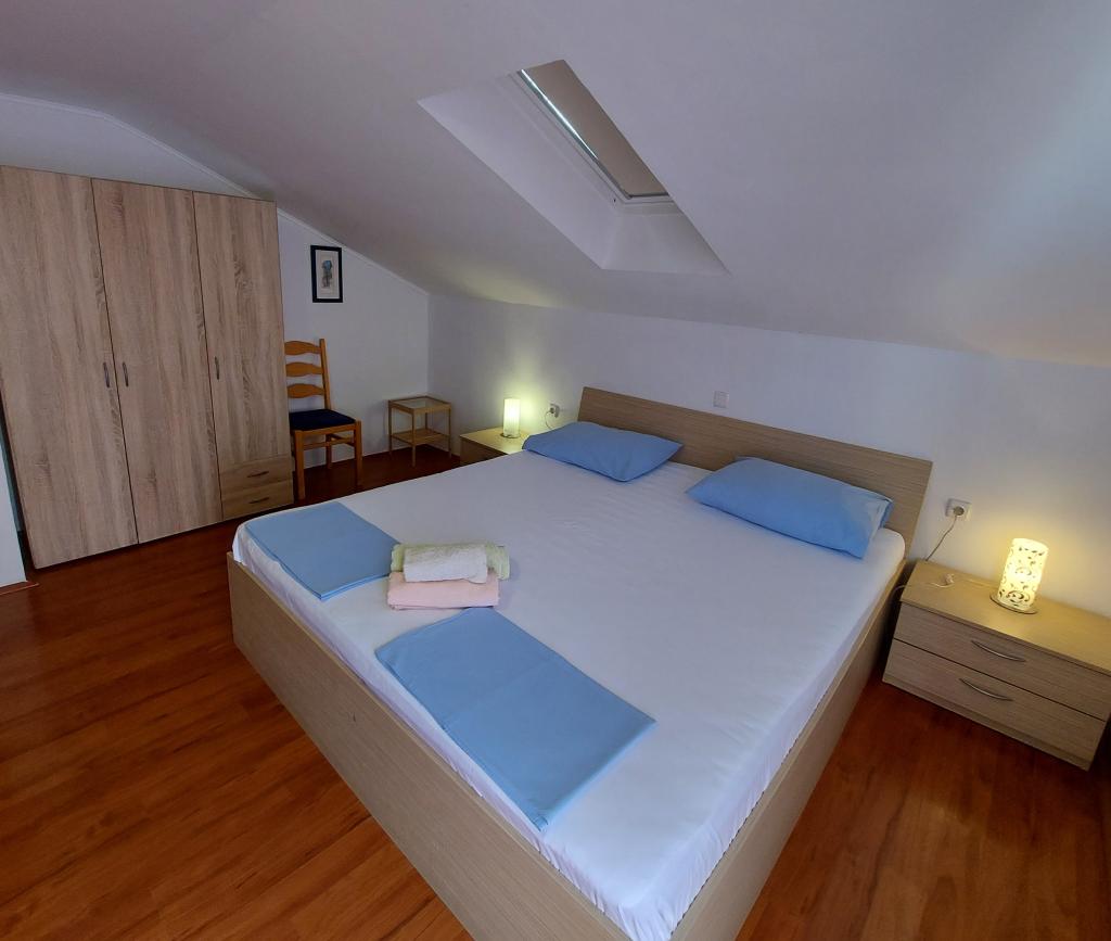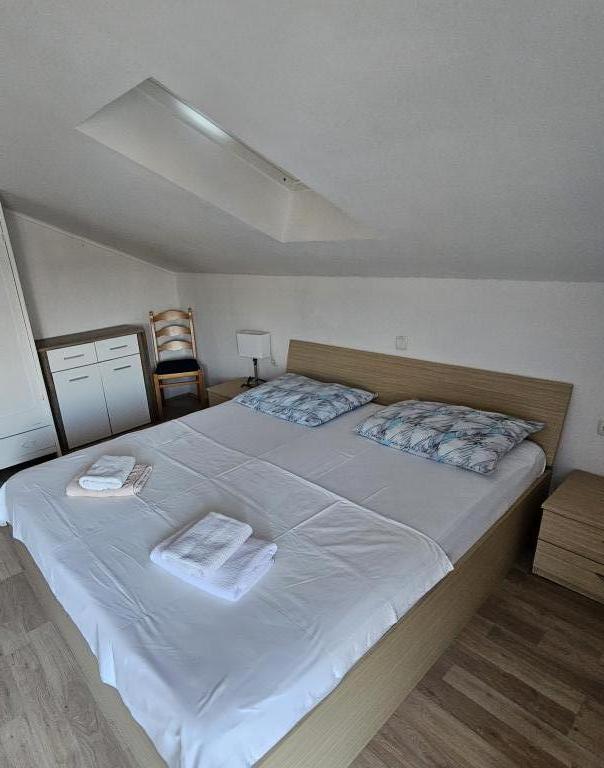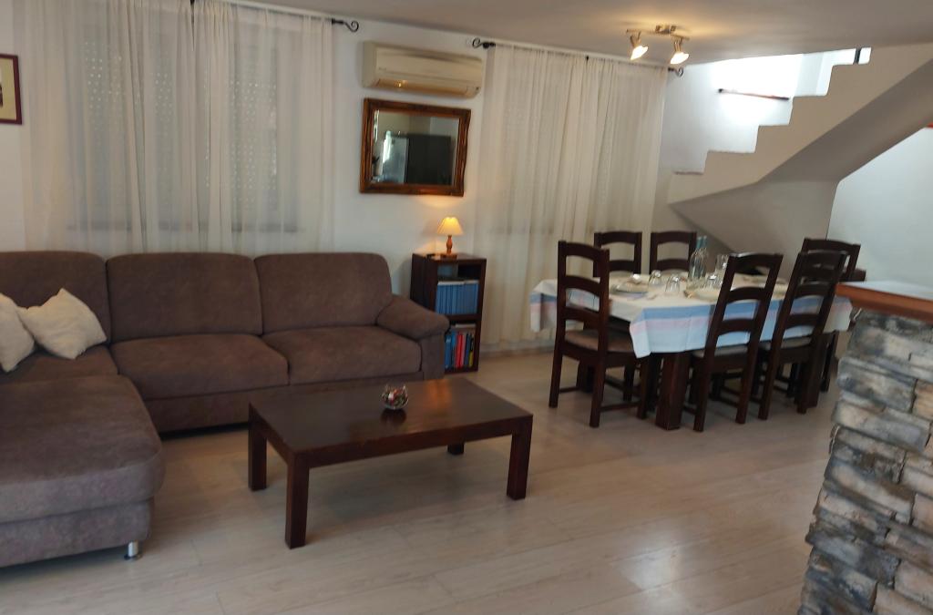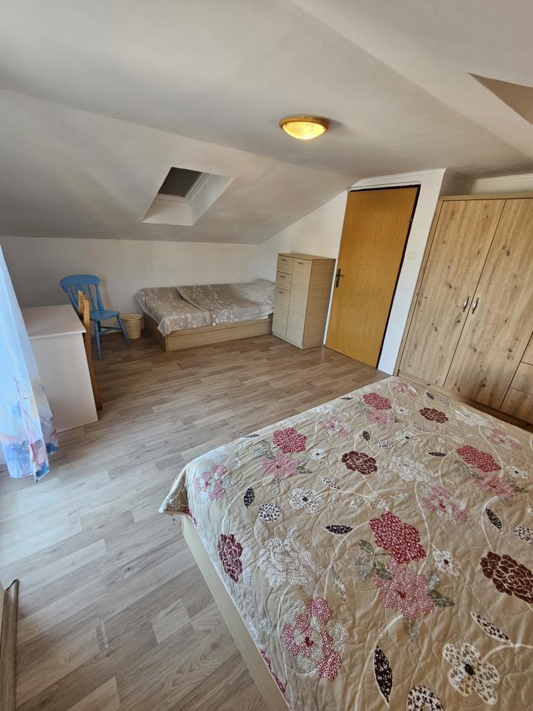 Gezinswoning met een volledig uitgerust appartement met drie slaapkamers op de tweede verdieping. Prachtig panoramisch uitzicht op zee. Het appartement heeft een overdekt terras dat toegankelijk is vanuit de woonkamer, en op dezelfde verdieping bevinden zich nog twee slaapkamers met badkamers (ingang vanuit de slaapkamer). Boven, op zolder, bevindt zich de derde slaapkamer, van waaruit u toegang heeft tot een onoverdekt terras, eveneens met uitzicht op zee. Naast de kamer is een aparte badkamer met een wasmachine. Het eerste strand ligt op 5 minuten lopen van het huis, de andere stranden liggen op 100-200 meter afstand en meer. Niet ver van het huis vindt u een promenade aan zee, een speeltuin, een tennisbaan, een basketbalveld, een bowlingbaan, bootverhuur, fietsen en scooters. Supermarkt, café, wisselkantoor, massagesalon, restaurant, pizzeria en een kleine haven. Gezinswoning met een aanbod voor een rustige en mooie vakantie.