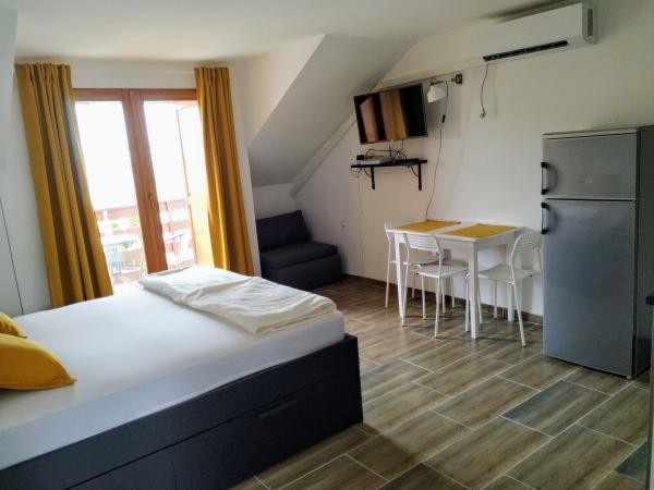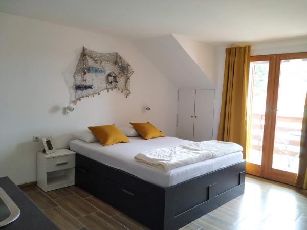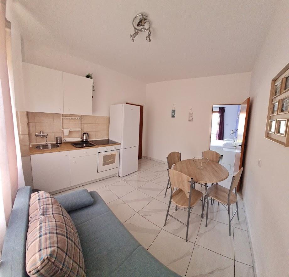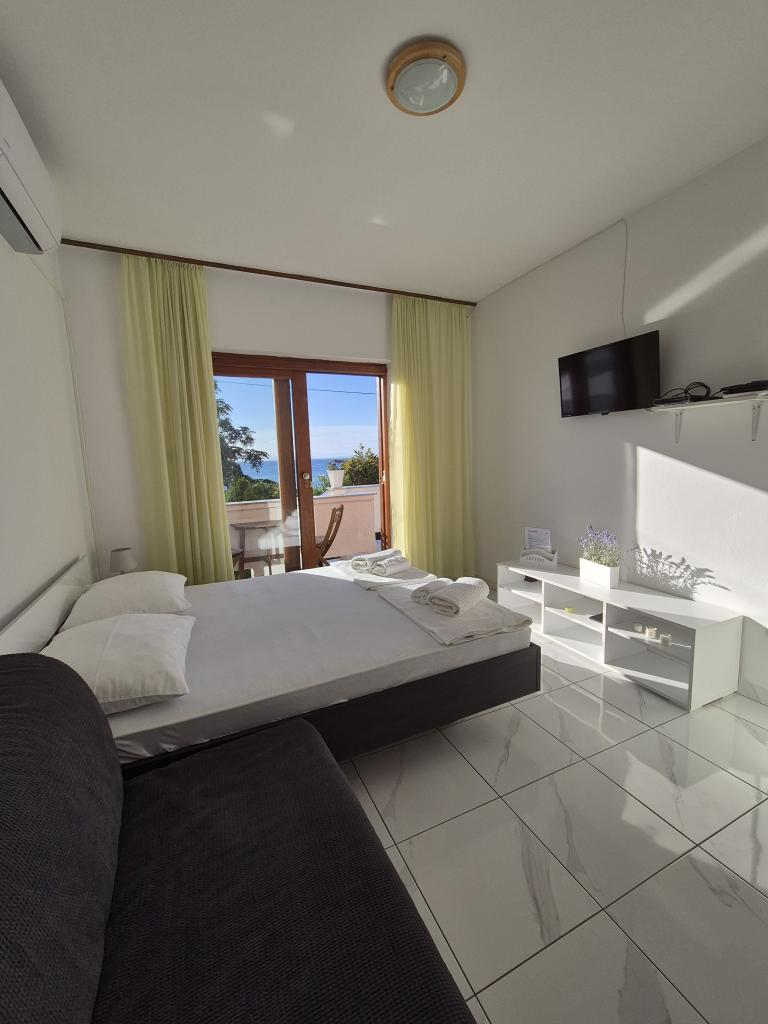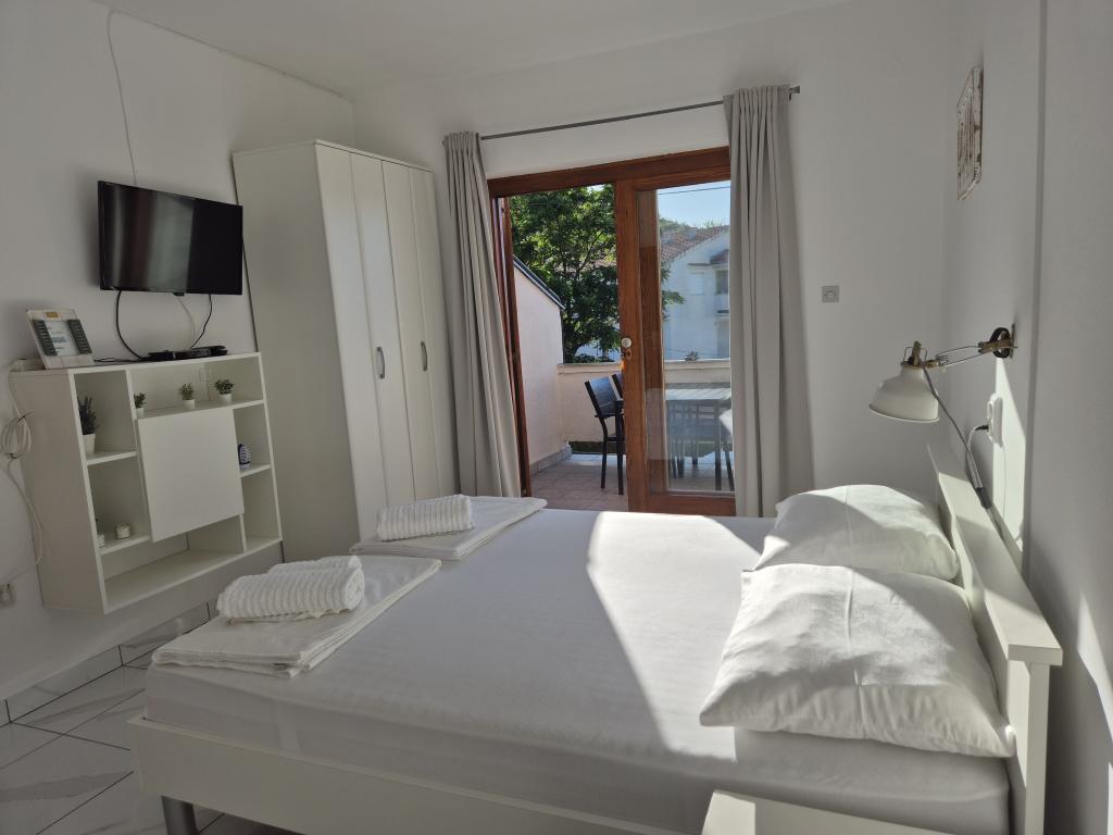 De appartementen bevinden zich op een rustiger en geïsoleerd deel van het eiland Rab, begrensd door een klein aantal huizen, bijna onmerkbaar verkeer en minimaal contact met de buitenomgeving, wat zorgt voor een gevoel van perfecte rust en volledige ontspanning. U en uw gezin worden verwelkomd door een mooie en nette ruimte met direct uitzicht op de zee, die op slechts vijftig meter (te voet) ligt met verschillende soorten stranden in de omgeving, ideaal voor echtparen met kinderen. Het huis bestaat uit twee appartementen (elk voor vier personen) en twee studio-appartementen (elk voor drie personen). In 2018 is alles volledig gerenoveerd. De appartementen en studio's zijn volledig uitgerust en beschikken over satelliet-tv, internet, airconditioning en beveiligde parkeergelegenheid. Het grootste kenmerk van ons gebied is de volkomen vredige omgeving, die gepaard gaat met het geluid van gekrijs, meeuwen, golven en af en toe een toeristenboot. Verkeer rond het appartement is zeer zeldzaam en er is geen overbelasting van toeristen, auto's en voorzieningen. U kunt de kinderen zorgeloos laten zwemmen en spelen.