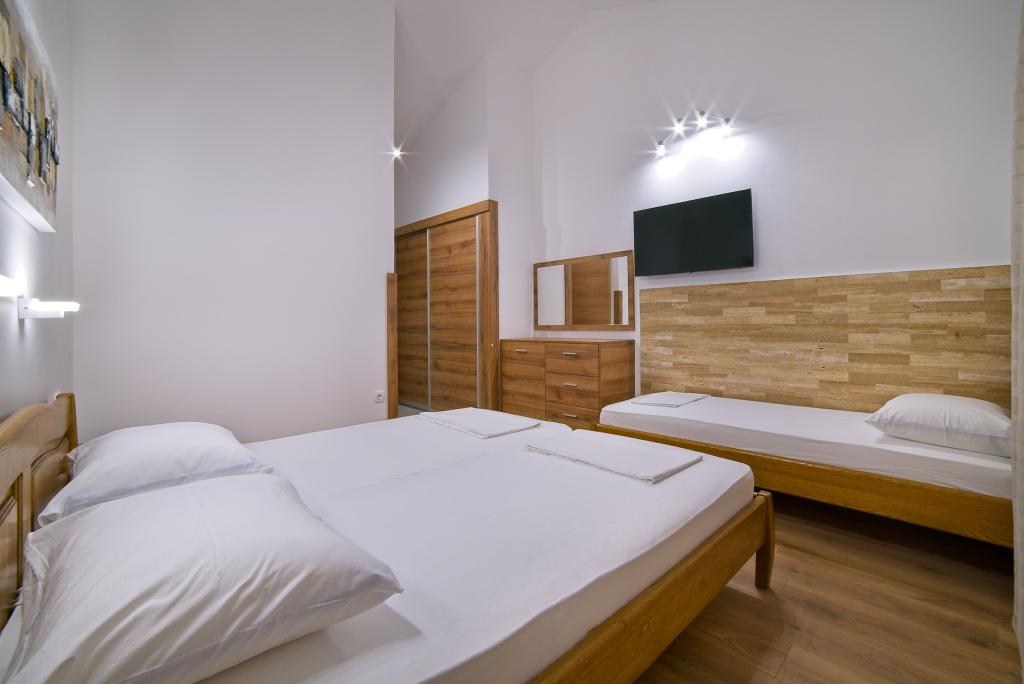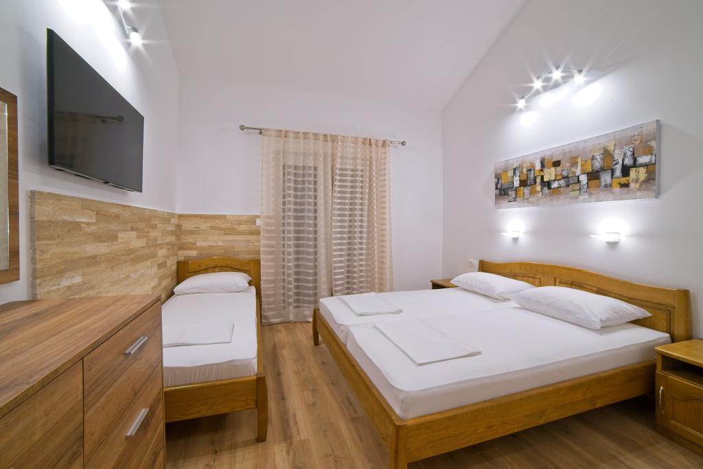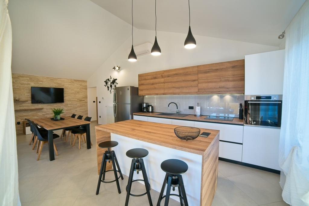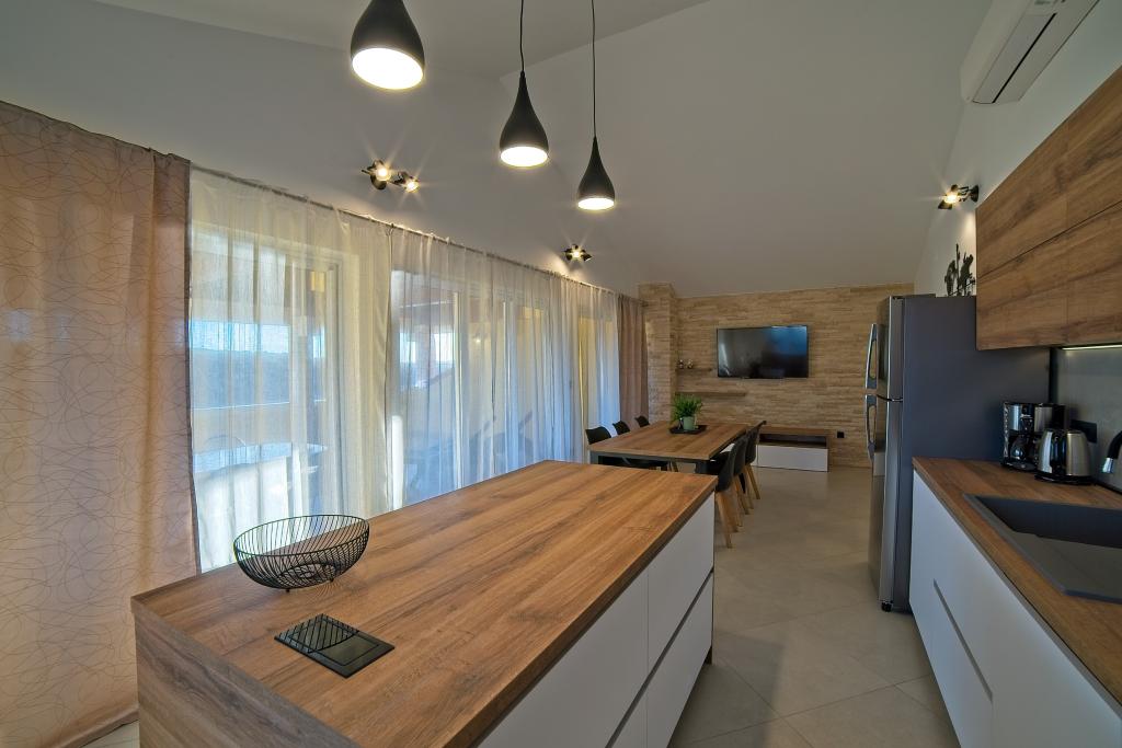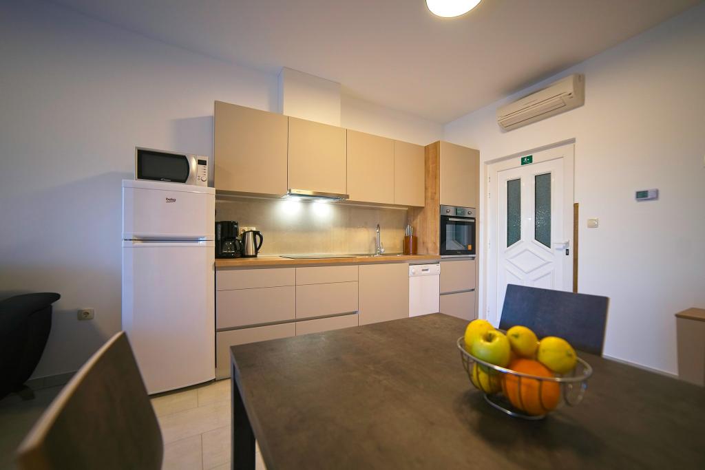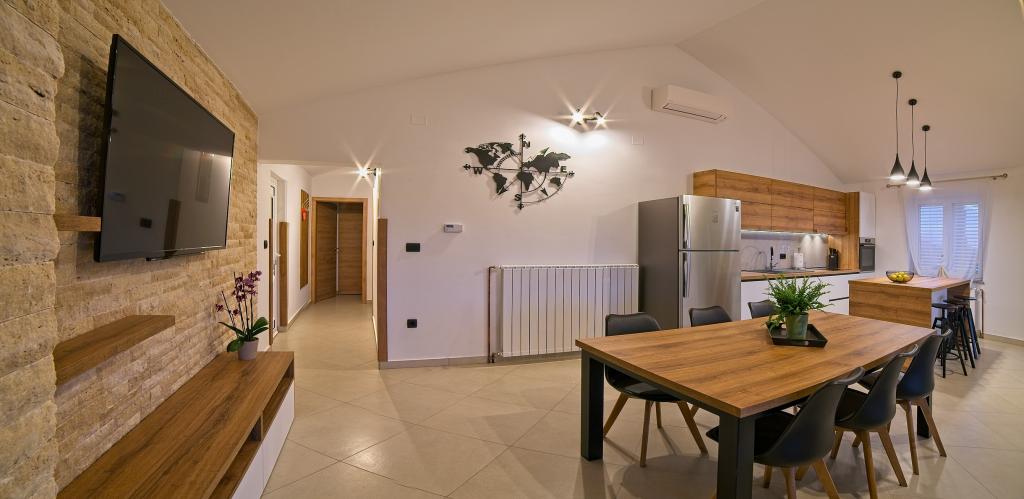 In Kampor op het eiland Rab, op 400 meter van de zee en een prachtig zandstrand, een modern en nieuw ingericht en uitgerust vakantiehuis met een bijzonder uitzicht op de zee en de hele baai van Kampor. Vakantiehuis Villa Milena op het eiland Rab heeft in totaal 5 appartementen (appartementen) voor 2 tot 6 personen. Het huis is gelegen op een mooie, rustige, verhoogde locatie. Het ligt op 400 meter van het zandstrand dat zichtbaar is vanaf het terras en de tuin van het huis, op 500 meter van het stadscentrum en op 5000 meter van de 2000 jaar oude stad Rab. Het zandstrand, met zijn ondiepe zee, smaragdgroene kleuren, biedt een specialiteit voor gezinnen met kinderen, en nieuwsgierige mensen en historici zullen genieten van een wandeling in de oude stad, vooral 's avonds. Kampor biedt ook veel sportieve mogelijkheden, zowel op zee als op het land, en vooral schone en comfortabele lucht, geschikt voor hartpatiënten en astmapatiënten.