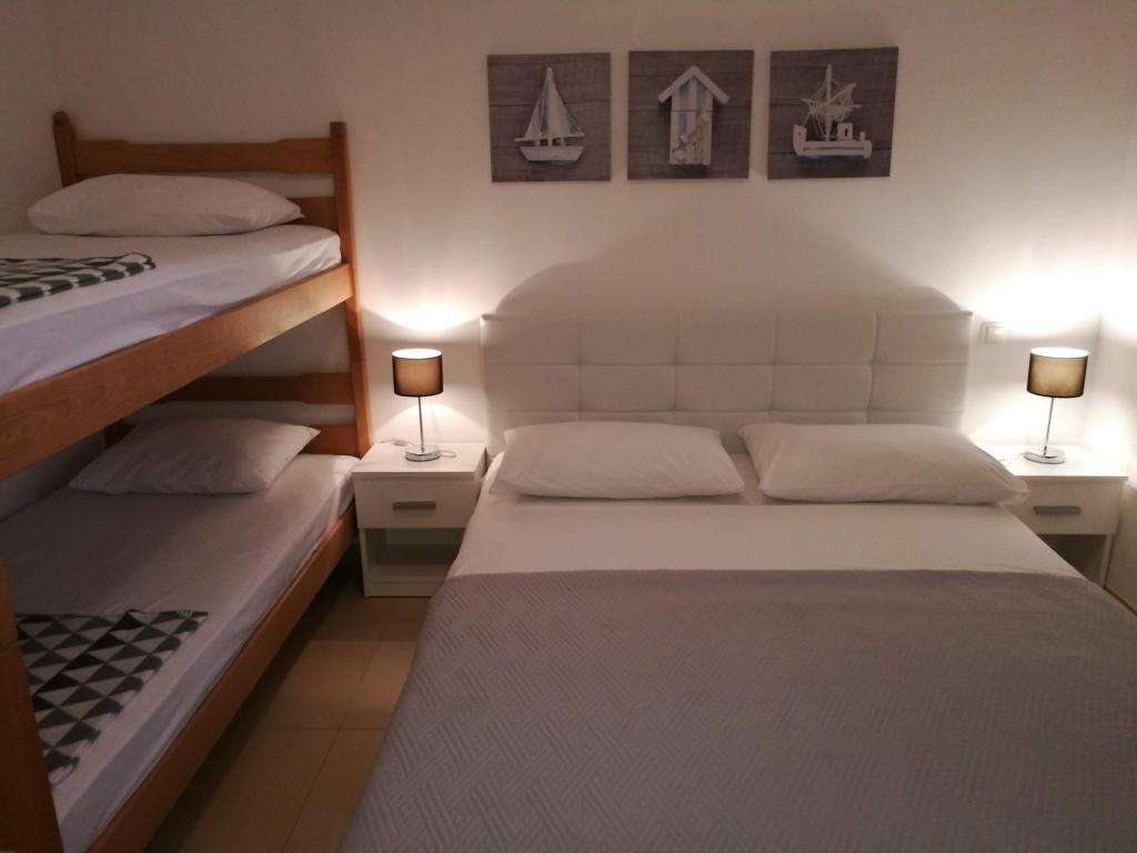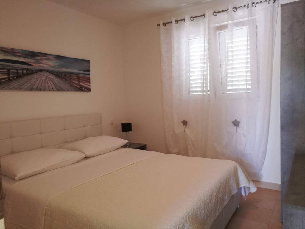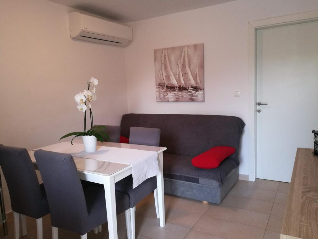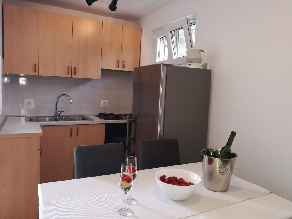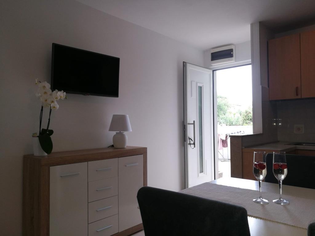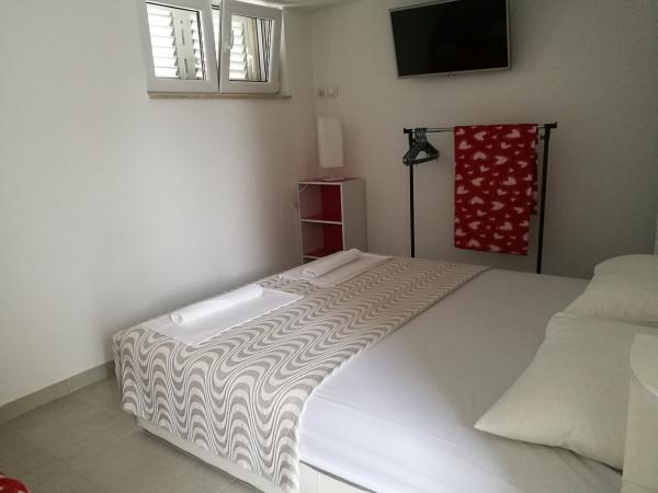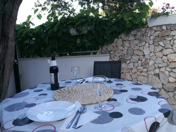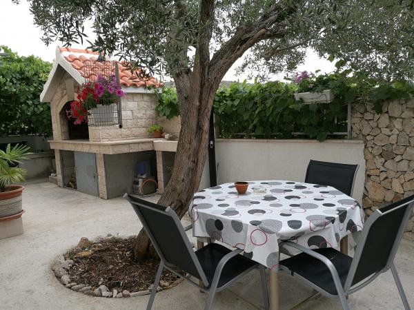 Met dure twee jaar odmarava in deze apartmajčku! Het appartement is schoon, netjes, modern gemonteerd op posteljci wachten om schone handdoeken! Terras, dat behoort tot het appartement is fantastisch met twee reusachtige grill, beton wastafel, douche, we zijn imelaml badkamer Bijna als decoratie. Senčko deel uit van een mooie olijfboom, dus 's avonds in staat zijn zeer romantisch te zijn! L Het strand ligt dejanako 10 m, een van de herberg, dat de prijaznoati voldoende 10im! De eigenaren op het moment van het verblijf is als ze ze te vangen, evenals ons, kom je uit Split doen diner!