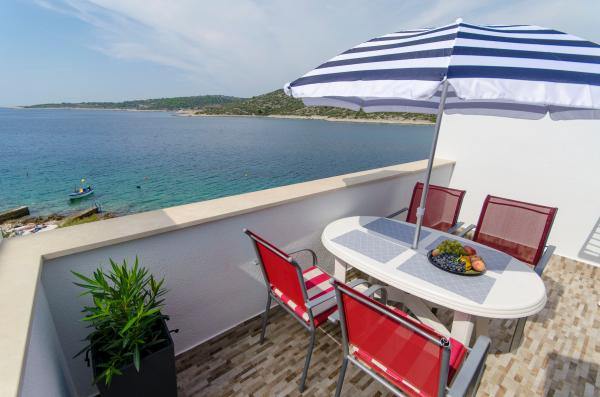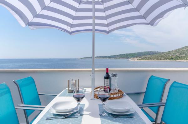 Gloednieuwe 2 appartementen voor elk 4 personen in het rustige stadje Kanica, binnen handbereik van Rogoznica, Primošten en Trogir. De appartementen bevinden zich op de eerste rij aan zee (10 m), hebben een privéstrand met georganiseerde toegang en beveiligde parkeerplaatsen. Een ideale plek voor gezinnen die hun vakantie in alle rust, stilte en privacy willen doorbrengen.