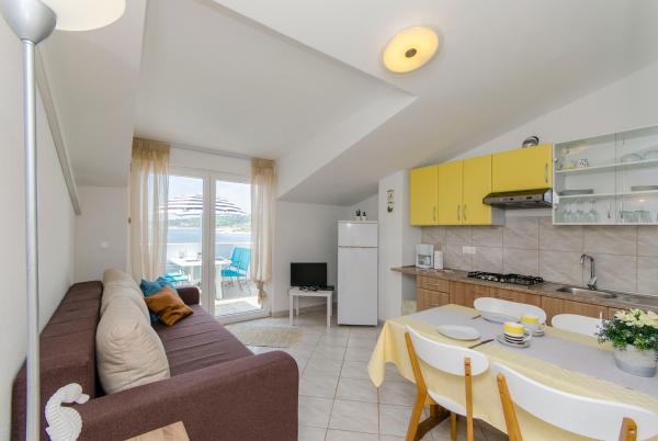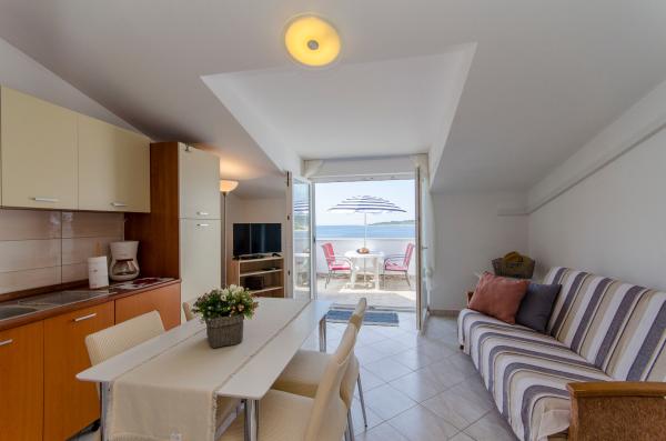 Een ideale plek om te ontspannen met een prachtig uitzicht op zee - het is een goede keuze voor iedereen die op zoek is naar ontspanning, rustige plek buiten de stad, lawaaierige bars en restaurants, maar er is een klein restaurant in de buurt met een dagelijks menu, pizza en ijs , ook is er elke dag een bakker met vers brood en bakkerijproducten. Kleine winkel ligt op ongeveer 1 km afstand. Appartement was schoon met een ruime badkamer, comfortabele bedden, volledig uitgeruste keuken, diner op het balkon tijdens het kijken naar de zonsondergang - het was echt een leuke ervaring! Strand is dichtbij, zee schoon. Omgeving van huis was schoon, zorgvuldig onderhouden, groen, geurige lavendel. Parkeren voor auto was in de tuin van eigenaren en werd beschermd tegen zon. Vriendelijke eigenaren, zorgzaam, maar respecteerden onze privacy volledig. Mevrouw Ivanka bood ons verschillende keren heerlijke zelfgemaakte gebakjes aan. Appartement heeft alles wat u nodig heeft, inclusief AC en snelle wifi. We waren zeer tevreden, in juli 2019 hebben we hier 2 weken doorgebracht. Nou bedankt! Peter en Gabriela, Slowakije