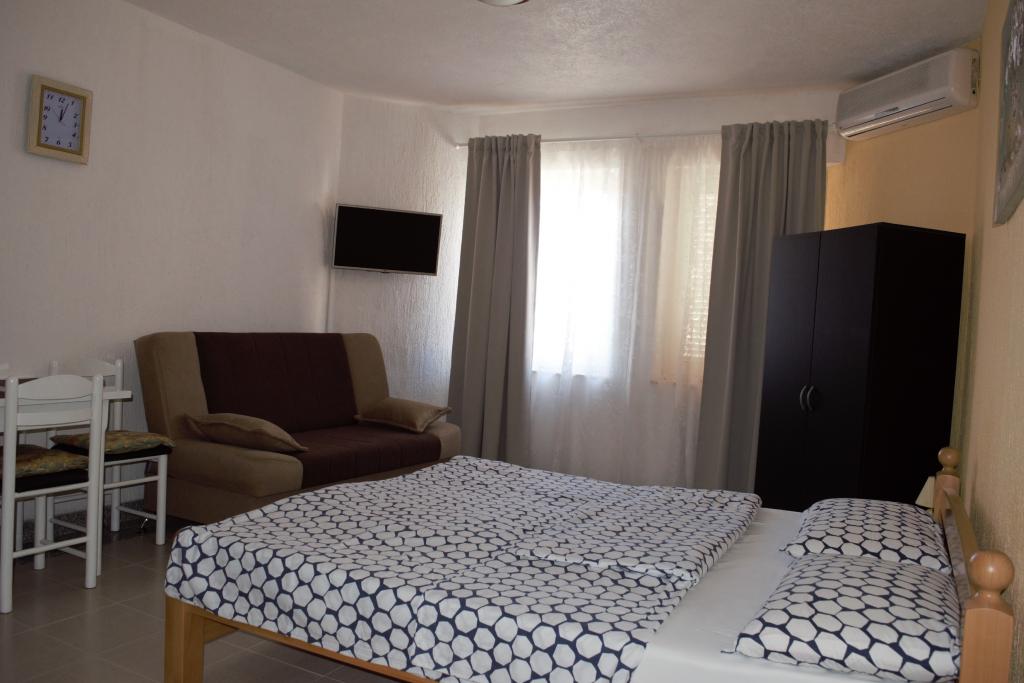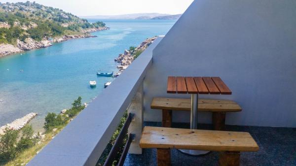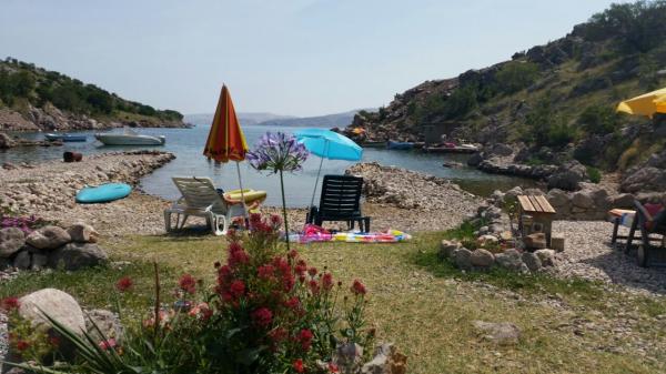 Het appartement was ruimte voor een gemakkelijke, op hoog niveau, schoon. De baai is fantastisch, veel bloemen en bomen. Iedereen kan een eigen plek hebben. Er zijn ligstoelen, douches, kajakken. Rust en vrede. Mooi uitzicht op het eiland Pag en elders aan de kust kunt u heerlijk zwemmen.