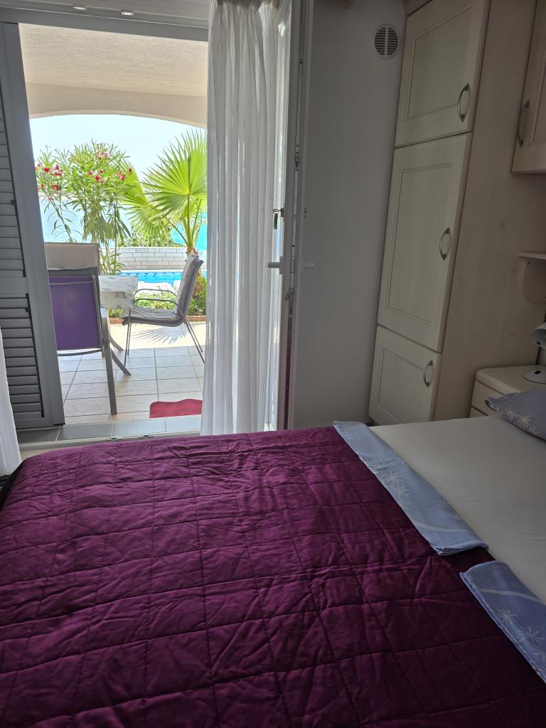 Zeer mooie appartementen, schoon en netjes ingericht, handig zwembad waar kinderen zich kunnen vermaken terwijl de volwassenen koken, vooral als je op de begane grond verblijft. De zee kan bijna niet dichterbij zijn, wat echt geweldig is, en erg schoon zonder algen en kwallen. Vriendelijke en correcte eigenaar. Een echte aanrader.