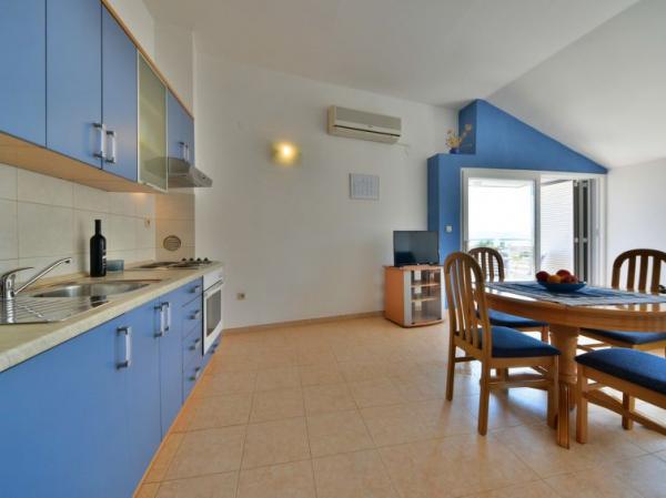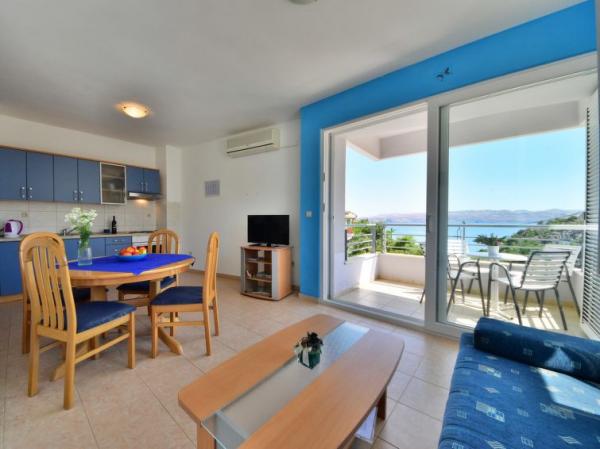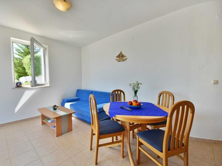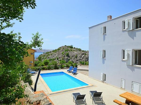 Heerlijk rustige plek met bergen achter en prachtig uitzicht op de zee en het maanlandschap van het eiland Pag voor je. Zwemmen in de zee in een prachtige baai met een minimum van mensen op ongeveer 100 m van het appartement. Accommodatie is redelijk, maar het zwembad en de zithoek zijn absoluut fantastisch. De gastvrouw is erg aardig. Ik raad ook ten zeerste aan om bij kinderen te blijven. Er is geen bar of disco binnen handbereik.