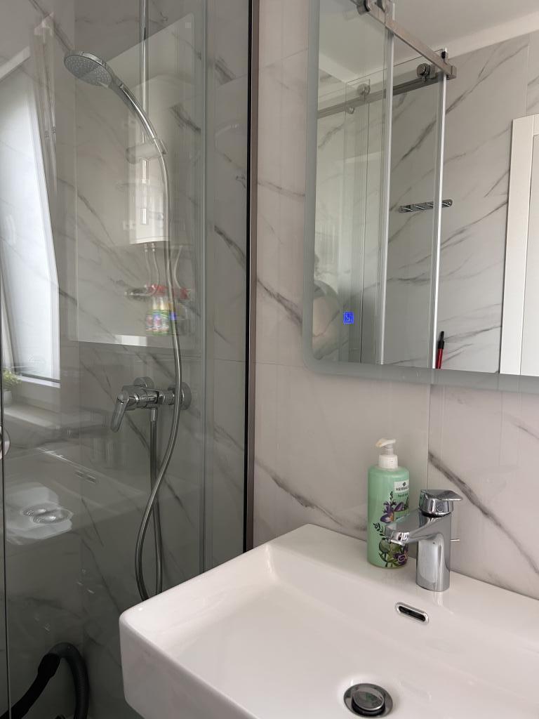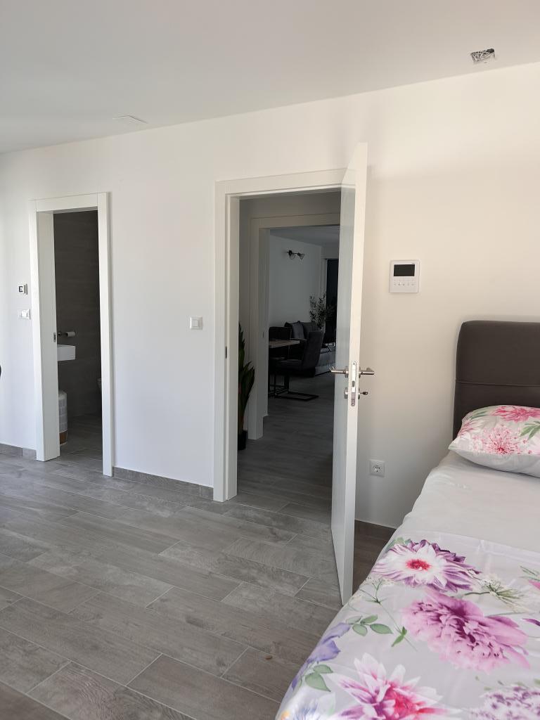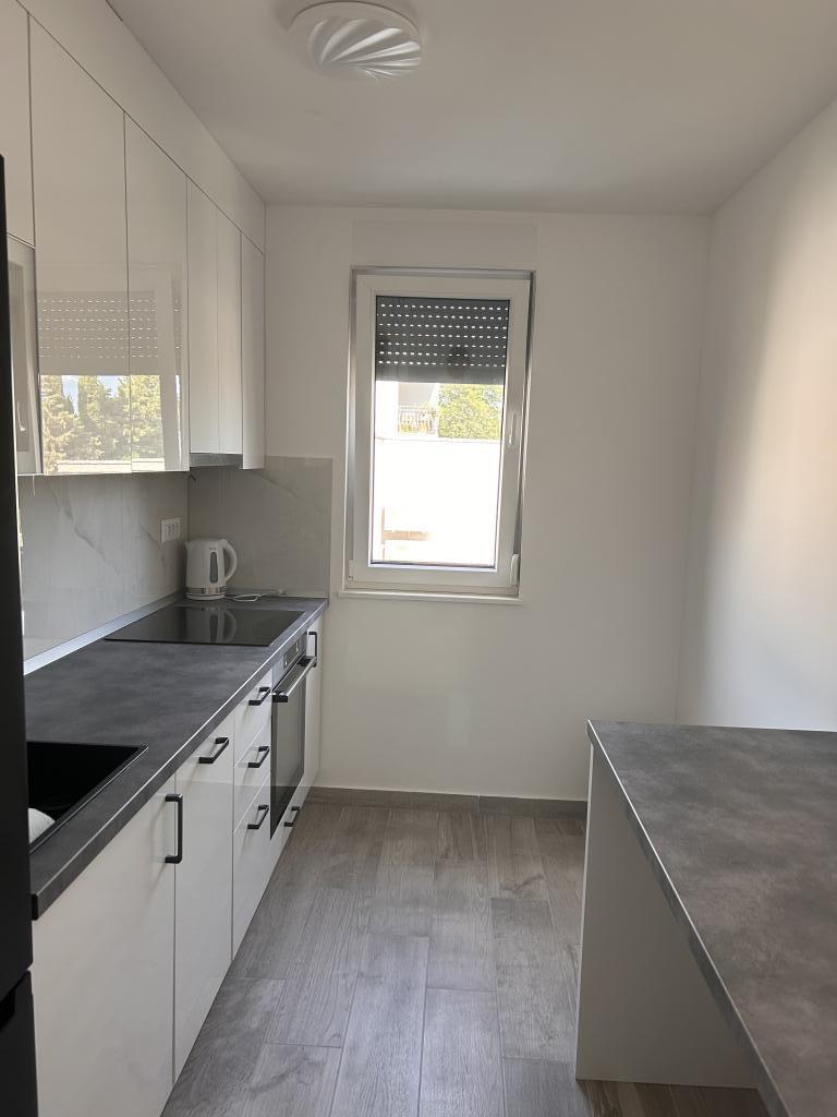 Nieuw appartement, gelegen in een woongebouw, en daarom enkel verhuurd aan rustige gezinnen die de voorkeur geven aan een rustige omgeving. Op de begane grond van het woongebouw bevinden zich een winkel en een café. Het stadscentrum en het strand liggen op ongeveer 200 m afstand. Het appartement is ontworpen voor 6 personen (4+2), wordt als geheel gebruikt en kan worden opgedeeld in een studio (2 personen) en een appartement voor 2+2, omdat het appartement twee keukens en twee badkamers heeft. Ideaal voor twee stellen of mensen die graag hun eigen privacy hebben. In de periode van 1.11-15.05 Prijs op aanvraag.
