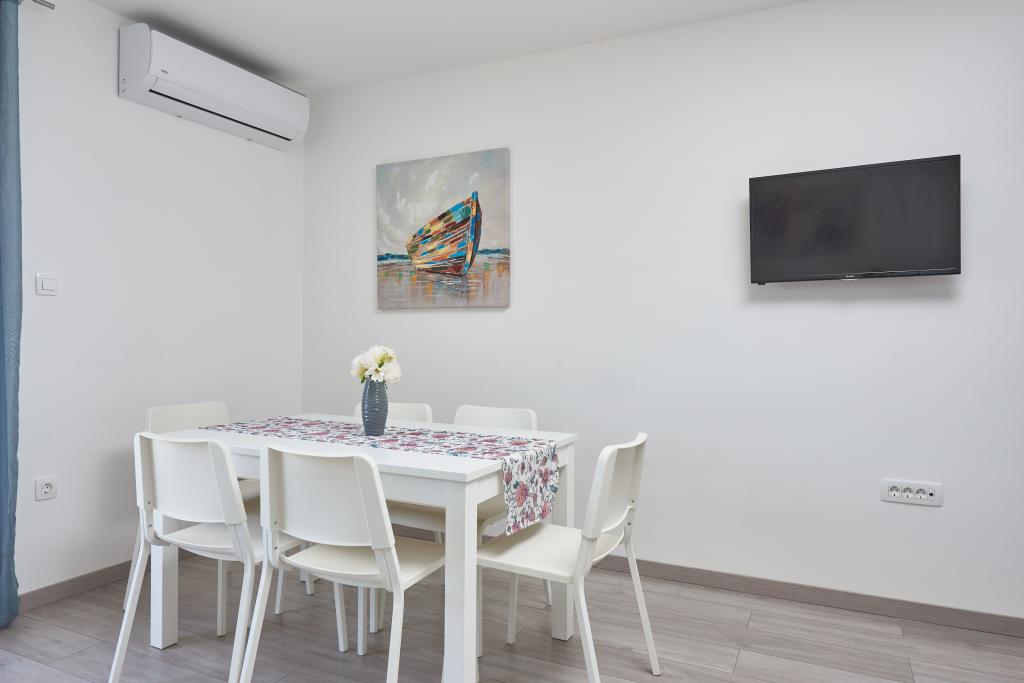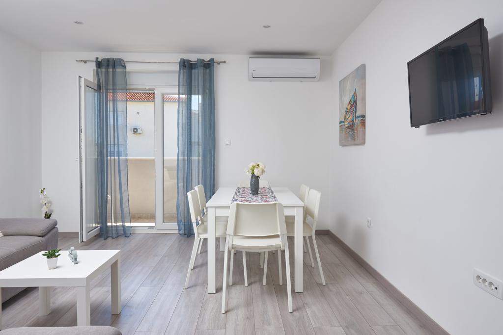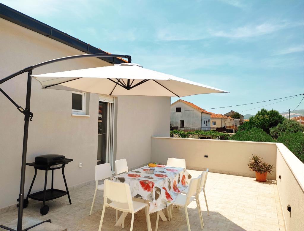 Pas gerenoveerd appartement met een groot terras en balkon. Gelegen in Kaštel Štafilić, een kleine, rustige plek, in de buurt van de UNESCO-steden Trogir en Split. Een ideale plek voor een familievakantie. Het appartement bestaat uit een volledig uitgeruste keuken, een woonkamer, drie slaapkamers met een tweepersoonsbed en een badkamer. Het appartement is voorzien van airconditioning, heeft 4 parkeerplaatsen, WiFi, tv en elektrische grill. Kinderzitje en kinderbedje zijn op aanvraag beschikbaar. Het strand met een café-bar, pizzeria en kinderspeelplaats ligt op 5 minuten lopen. Binnen 200 meter van het appartement zijn er winkels, cafés, restaurant, slager, vismarkt, geldautomaat, apotheek. Het dichtstbijzijnde winkelcentrum ligt op 5 minuten rijden.