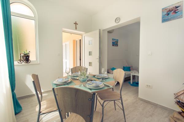 Apartments Kampanel ligt in het hart van Kaštel Kambelovac. De appartementen zijn nieuw en volledig uitgerust. De appartementen bestaan uit twee slaapkamers, een volledig uitgeruste keuken, een badkamer en een terras. Er is een grote supermarkt met een slagerij in de buurt. Appartementen zijn slechts een paar minuten lopen van het strand, de bar, het restaurant. Het busstation bevindt zich op 20 meter van de accommodatie, zoals het postkantoor en de bank. Kastela ligt tussen twee steden van UNESCO, Split en Trogir, op slechts 10 km afstand.
