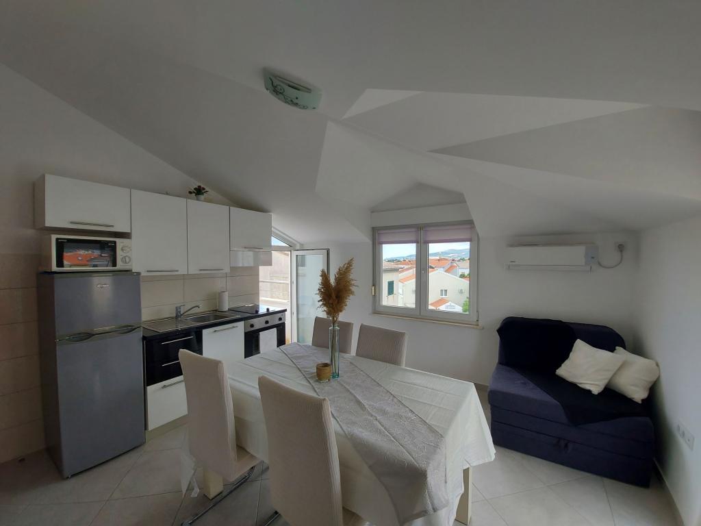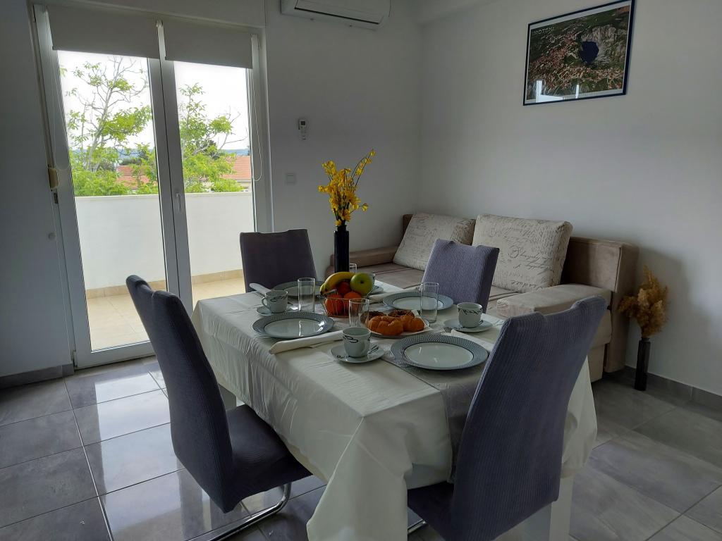 In het huis zijn twee appartementen, te evalueren apt. 1, dat is perfect. Het heeft twee terrassen, waarvan een met een zithoek met uitzicht op de zee. Het appartement is modern en schoon. Airconditioning is niet alleen in de keuken, maar als je de deur naar de kamer open te laten, dus het is genoeg. Gratis Wi-Fi. Het huis staat op het dorp weg, waar dag en nacht het verkeer, maar ons appartement was gericht aan de andere kant, dus niets om ons te storen. Niet ver weg is handel. Super is ook een zwembad met ligstoelen en een douche. De zee ligt op ongeveer 200 m, maar in plaats daarvan gingen we een beetje verder, was er een betere binnenkomst in het water. Hoe dichter bij het strand waren in een zee van grotere stenen. Anders, beide kiezelstranden. In de omgeving zijn diverse restaurants. Langs het strand lopen naar het historische deel van de stad, iets voor romantici. Er zijn ook winkels, restaurants, fietsverhuur. Op reis gaan is een korte wandeling naar Split en Trogir. In de buurt van de luchthaven Split, zodat vliegtuigen over ons heen vlogen, maar dat we niet eens luisteren. Mr. eigenaar Zoran is erg vriendelijk en behulpzaam. Laat ons heel veel. Ik denk dat de apt. 1 verdient 4 sterren. Ik wil het iedereen aanraden :-)