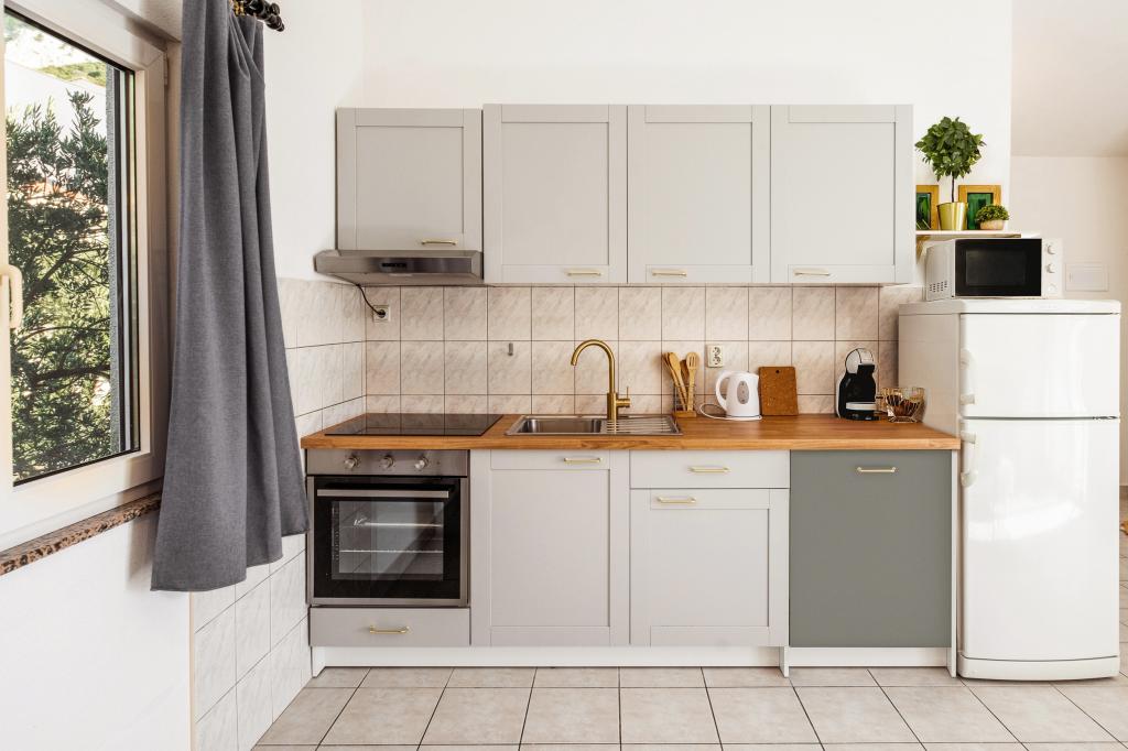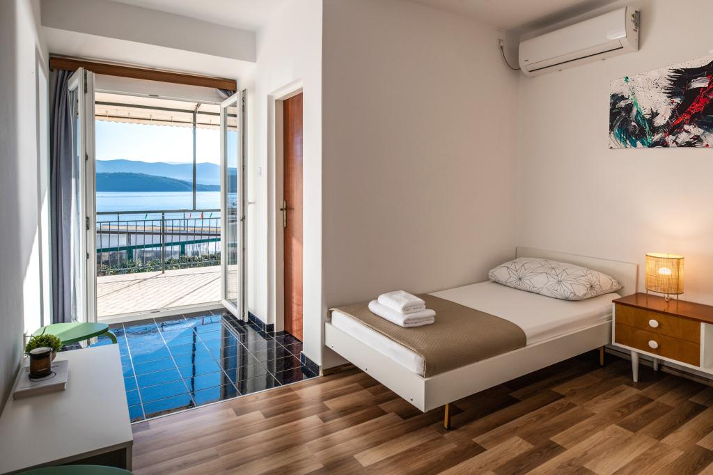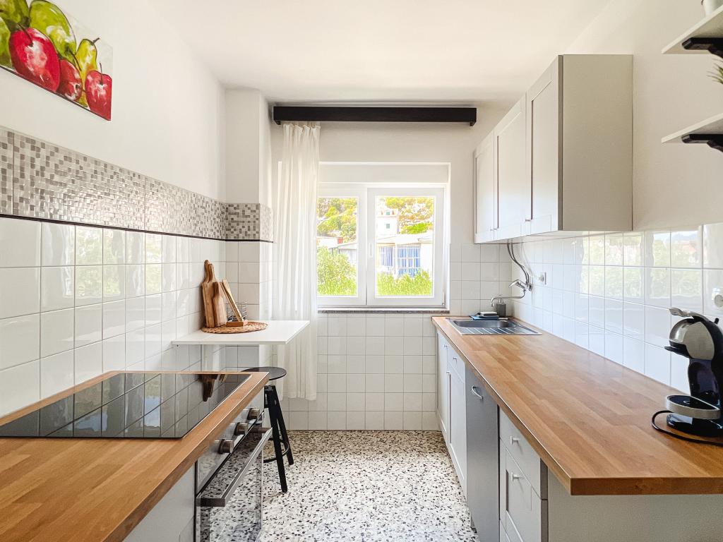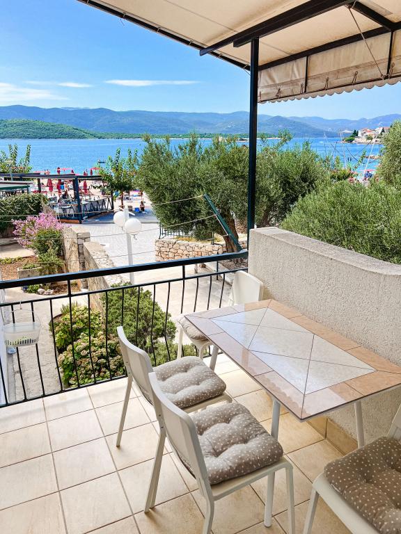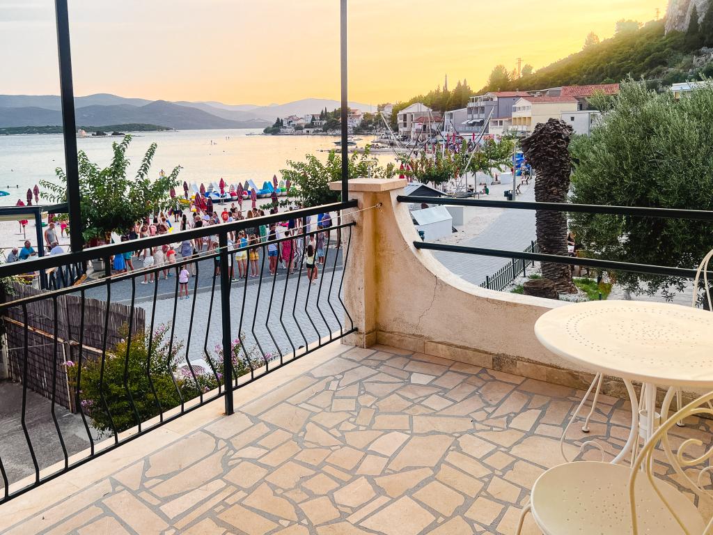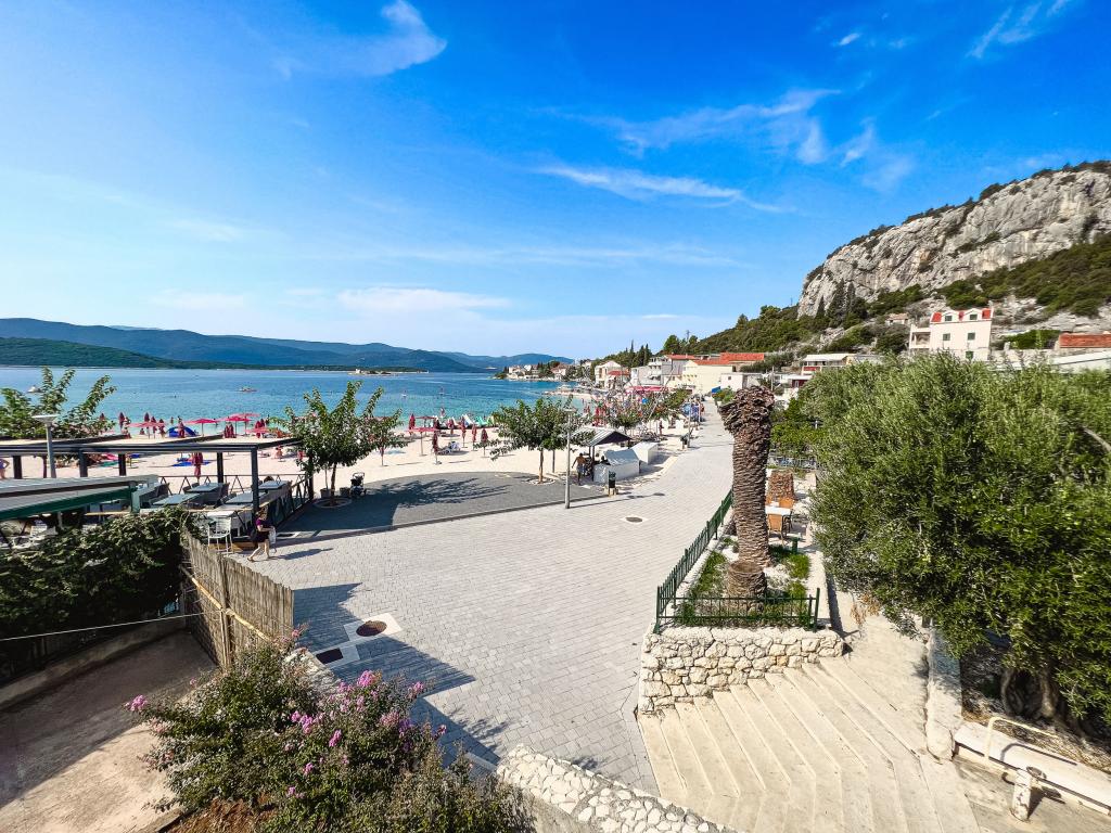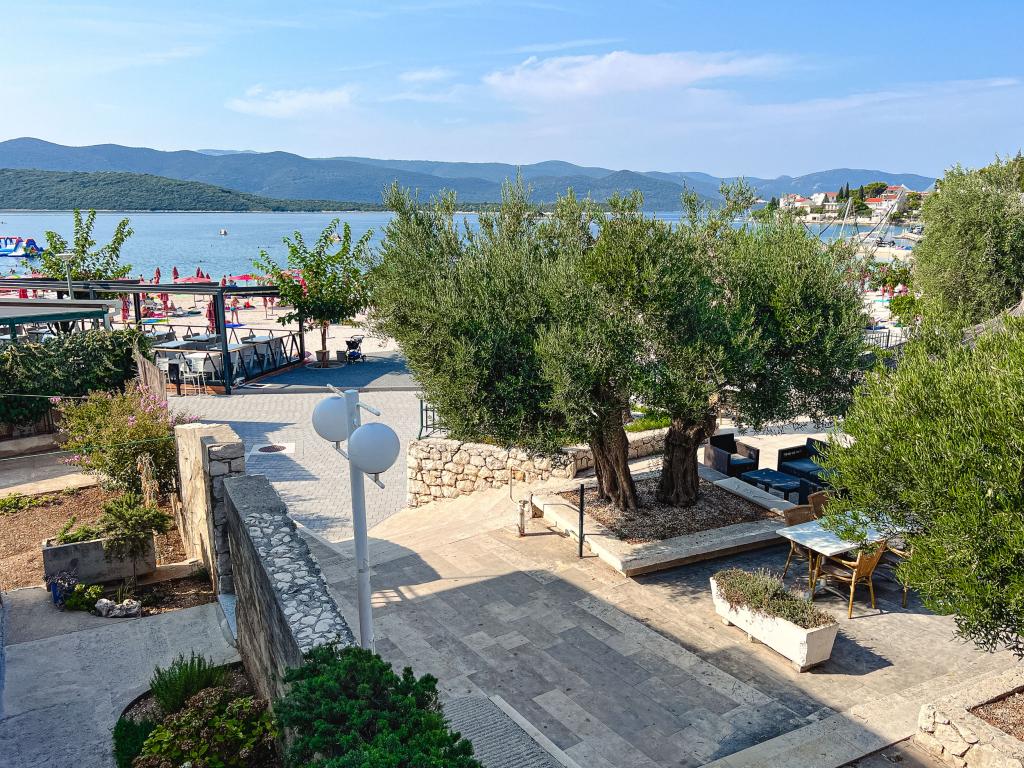 Een van de beste accommodaties die we in Kroatië hadden. De gastheren zijn erg vriendelijk en meegaand. De appartementen zijn mooi met uitzicht op zee. Parkeren op het erf van het huis (we waren met zijn drieën, 6 volwassenen + 9 kinderen). Grote schaduwrijke pergola met open haard om te grillen en buiten te koken. Er is ook een wastafel met kraanwater ernaast, de kamers zijn volledig uitgerust met beddengoed, handdoeken, servies, vaatwasser, wasmachine, koffiezetapparaat. Er zijn twee restaurants direct naast en onder het huis, van waaruit we eten naar het appartement kunnen brengen. Naast het huis in de tuin is er ook een plek om strandstoelen en opblaasbare parasols op te bergen. Echt een prima accommodatie voor een gezin met kinderen die zelf 50 meter naar het strand kunnen lopen.
