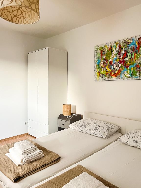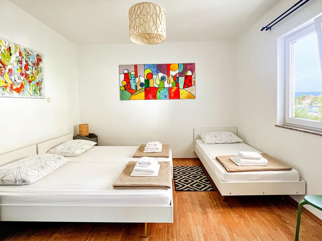 Perfecte plek op een zeer goede locatie (op slechts een steenworp afstand van het strand). Een van de beste plaatsen waar we zijn geweest in Kroatië. Het appartement heeft alles wat u nodig heeft op vakantie, elke kamer heeft een badkamer en airconditioning, een volledig uitgeruste keuken met vaatwasser. Drie balkons met uitzicht op de zee en de stranden. Bakstenen grill met zitplaatsen, parkeerplaatsen (de gastheer zorgt voor het afdekken van de auto, wat een groot pluspunt is). Heerlijke olijfolie! Ik raad deze plek ten zeerste aan om te ontspannen