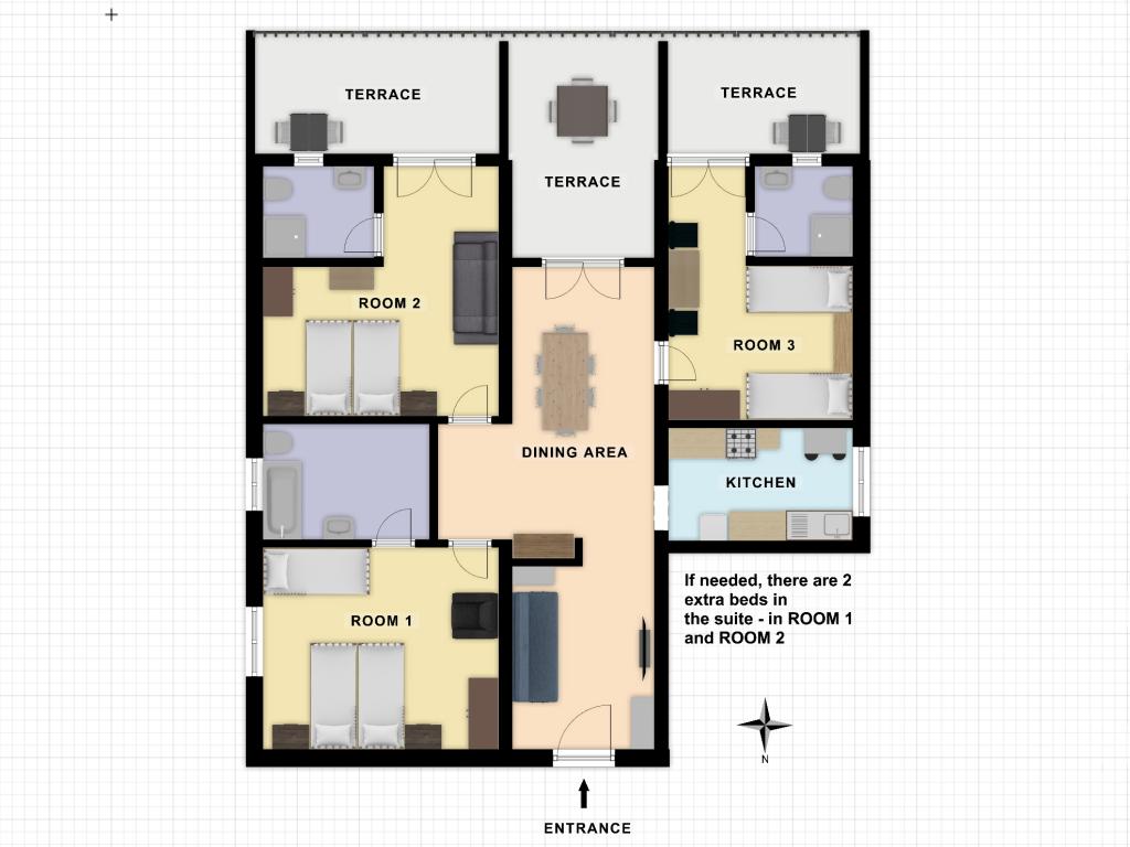 Gelegen in het centrum van Klek, eerste rij aan zee, op slechts tien meter van het strand en de meeste faciliteiten die de plaats biedt. Er is een parkeerplaats en een grill in het huis, die beschikbaar is voor gasten. De appartementen zijn uitgerust met airconditioning, tv, wifi en hebben elk een terras met uitzicht op zee. Naast de woonkamer, eetkamer en keuken beschikt het grote appartement over drie aparte slaapkamers met elk een eigen badkamer, airconditioning en toegang tot het terras.