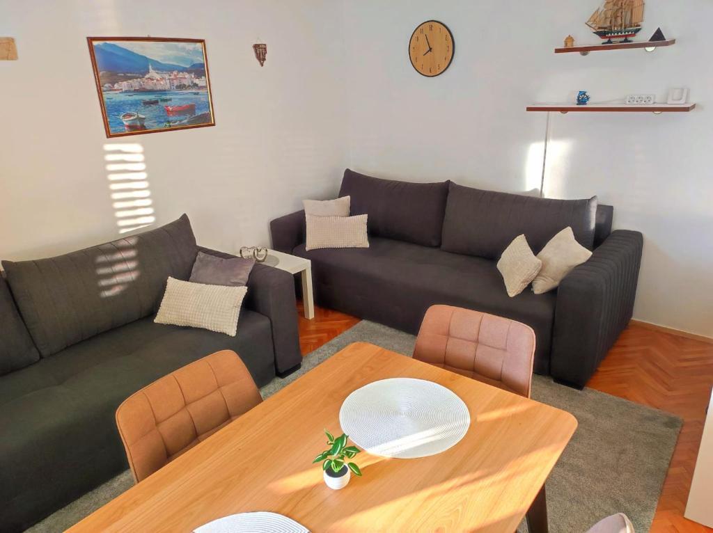 Appartement Riva in Klenovica, vlak bij Novi Vinodolski, ligt op een steenworp afstand van de zee. Alle benodigde voorzieningen zijn in de buurt en de stranden liggen op slechts enkele minuten loopafstand langs de zee. Beide appartementen zijn uitgerust en beschikken over alles wat u nodig heeft voor een aangename vakantie. Appartement op de begane grond: WiFi, IPTV, satelliet, Netflix, smart-tv UHD, barbecue, wasmachine, ingerichte keuken, ruim terras om te ontspannen en gratis parkeerplaats. Het appartement is geschikt voor maximaal 5 gasten en beschikt over een kamer met een bed van 160x200 cm en een bed van 80x200 cm. In de woonkamer staat een comfortabele slaapbank van 150x200 cm. Appartement op de eerste verdieping: WiFi, IPTV, Netflix, smart TV UHD, barbecue, ingerichte keuken, ruim terras om van te genieten en gratis parkeerplaats. Het appartement is geschikt voor maximaal 5 gasten. De kamer beschikt over een bed van 160x200 cm en in de woonkamer staan 2 nieuwe comfortabele banken van 160x200 cm.