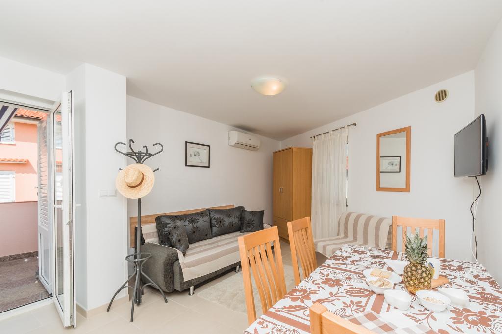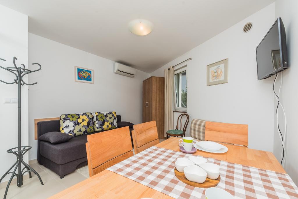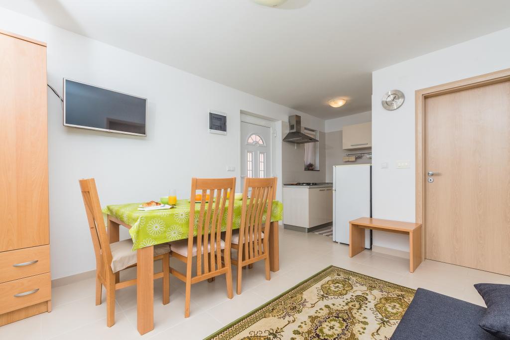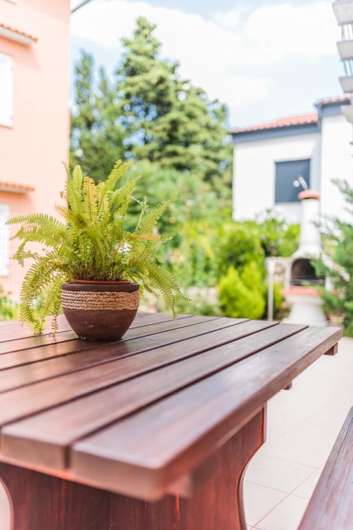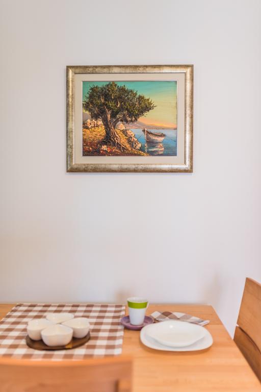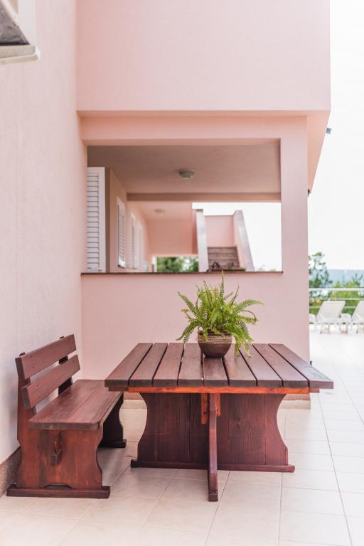 In het dorp Klimno, een huis met 4 appartementen op een rustige en zonnige locatie, in een doodlopende straat. Afstand van de zee 200 m. De stranden zijn kiezel- en rotsachtig. Voor medegebruik van percelen van 400 m2. Beschikbare buitendouche, ligbedden, grill, terras 60 m2, tafel en bank. 1 parkeerplaats per appartement. Appartementen Fenix 1 en Fenix 2 bevinden zich op de bovenste begane grond, en appartementen Fenix 3 en Fenix 4 bevinden zich op de eerste verdieping.