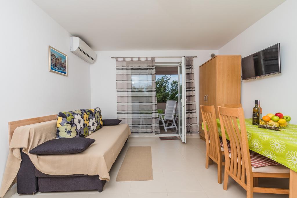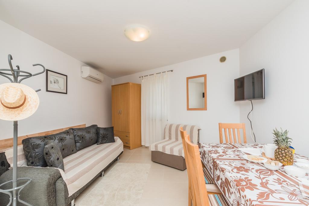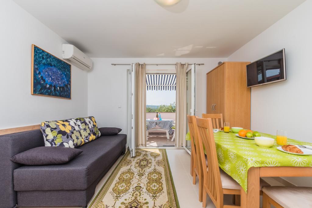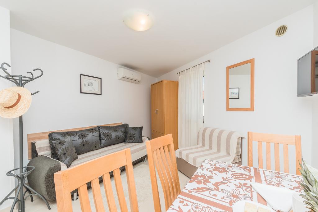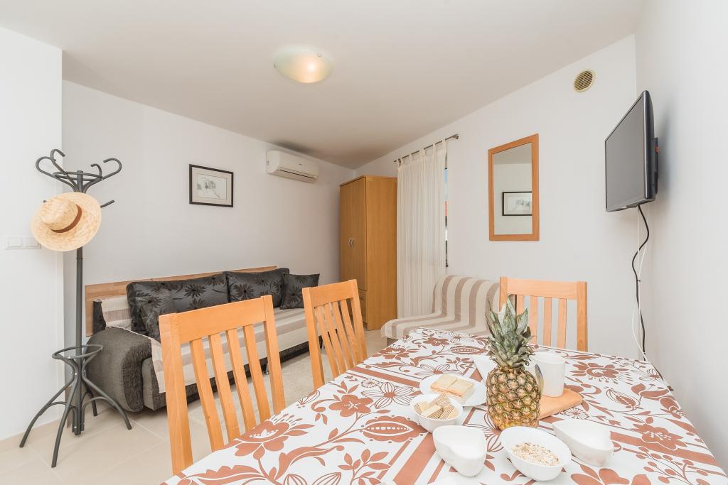 In het dorp Klimno, een huis met 4 appartementen op een rustige en zonnige locatie, in een doodlopende straat. Afstand van de zee 200 m. De stranden zijn kiezel- en rotsachtig. Voor medegebruik van percelen van 400 m2. Beschikbare buitendouche, ligbedden, grill, terras 60 m2, tafel en bank. 1 parkeerplaats per appartement. Appartementen Fenix 1 en Fenix 2 bevinden zich op de bovenste begane grond, en appartementen Fenix 3 en Fenix 4 bevinden zich op de eerste verdieping.