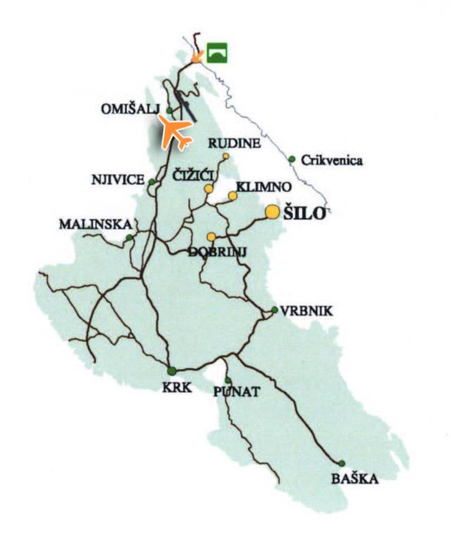 Het strand en de camping met een restaurant, winkel en strandbar liggen op 250 m afstand. Op 600 m afstand, in het stadscentrum, vindt u nog een winkel, een café en 2 restaurants. Ook zijn er een banketbakkerij, een bakkerij, cafés en verschillende restaurants in de baai te vinden. Malinska ligt op 12 km afstand en heeft alle voorzieningen zoals restaurants, bars, apotheken, tankstation, supermarkten, disco, hotels, busstation en waterskiën. De luchthaven van Rijeka ligt op 14 km afstand.