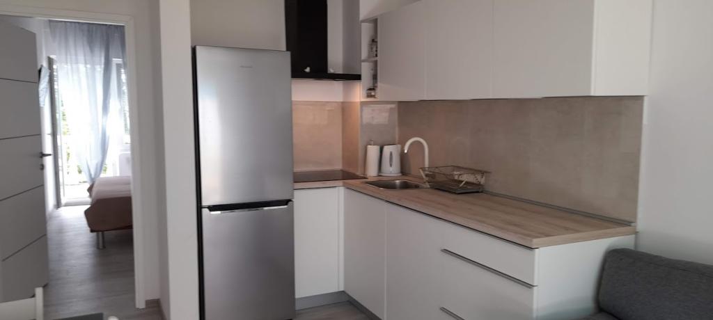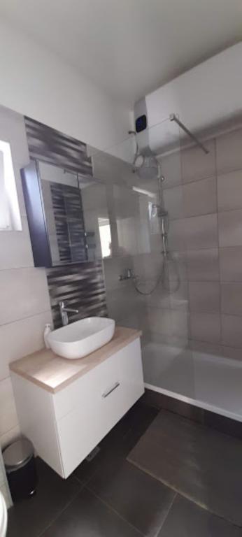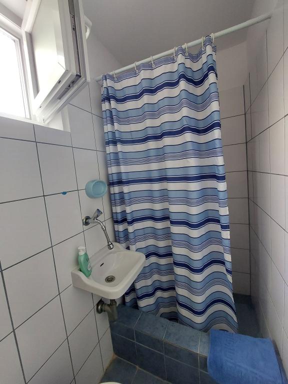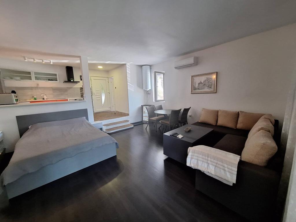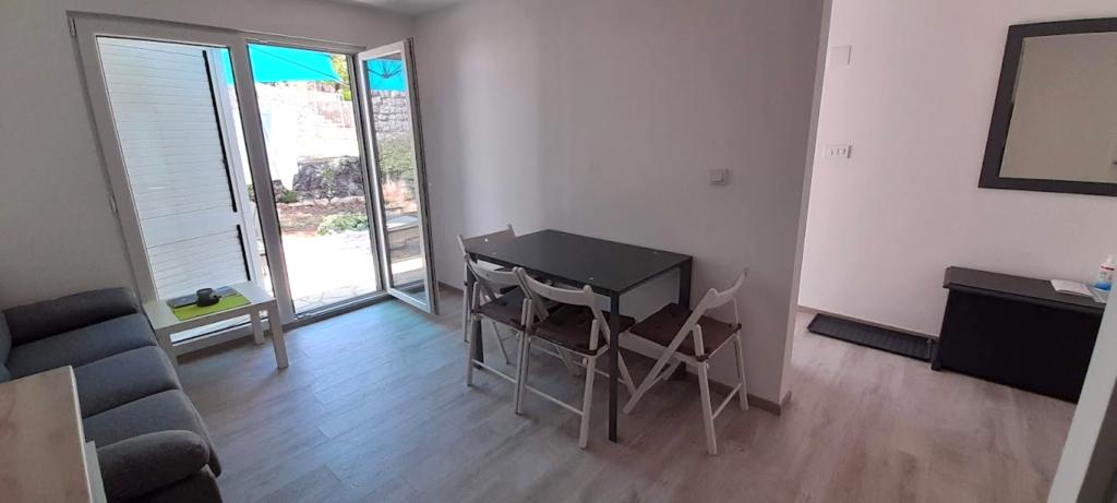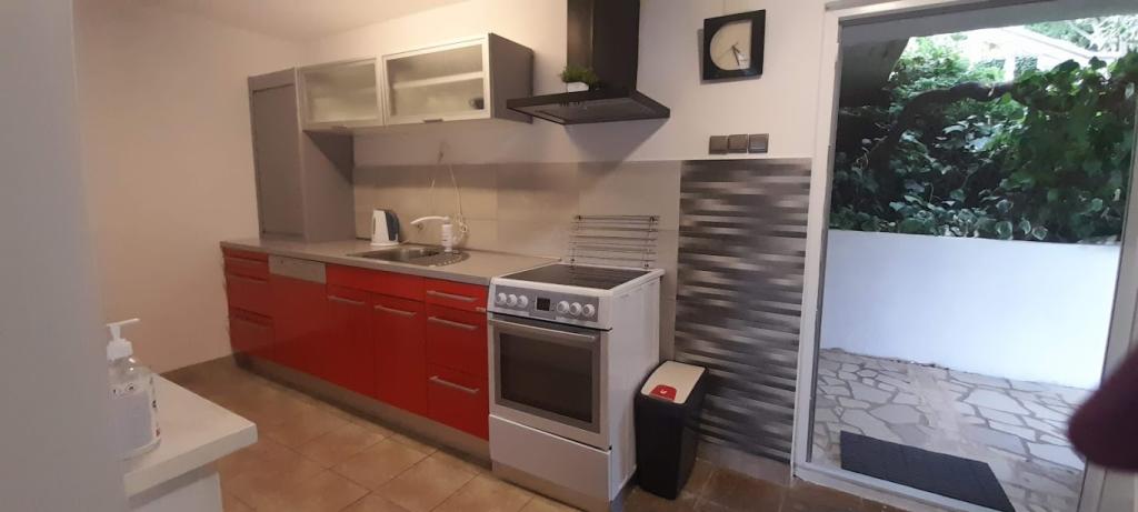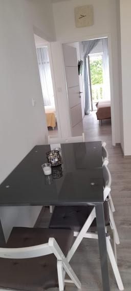 Ons huis in Klimno in de baai van Soline, bekend om zijn geneeskrachtige modder en de Biserjuka-grot, bestaat uit een studio-appartement voor 2 personen op de begane grond met een terras van 20 m2 en een appartement op de 1e verdieping met een aparte ingang en 2 terrassen voor 4 personen met 3 sterren op een rustige plek midden in de natuur. Wij beschikken over een tuin met een houtgestookte barbecue die u gratis kunt gebruiken en een buitendouche. Wij bevinden ons op 250 m van de zee. Het grote appartement bestaat uit een hal, een badkamer met een grote douche, 2 slaapkamers met elk een tv, airconditioning en toegang tot een terras met een tafel en stoelen om te zitten en ligstoelen, een keuken met een woonkamer met toegang tot een ander terras met zitmeubilair. Het studio-appartement van 50 m2 beschikt over een kleine badkamer en een terras met een tafel, stoelen en een ligstoel. De keukens in beide appartementen zijn voorzien van een koelkast, vriezer, magnetron, keramische kookplaat, afzuigkap, broodrooster, waterkoker, koffiezetapparaat, compleet bestek en een haardroger. WIFI is gratis. Huisdieren op aanvraag. Gratis gebruik van beddengoed, handdoeken en airconditioning.