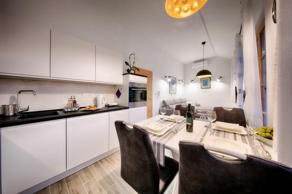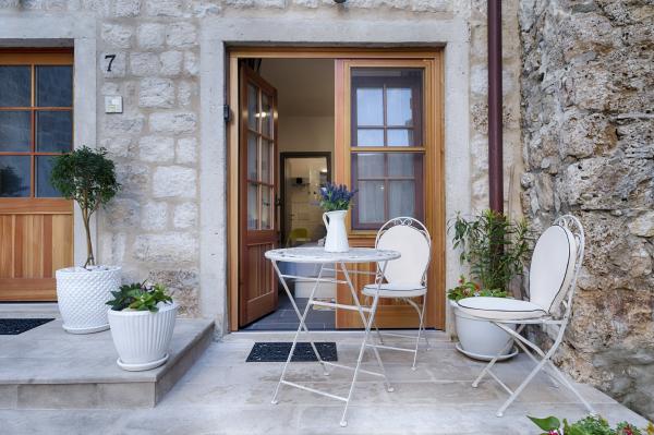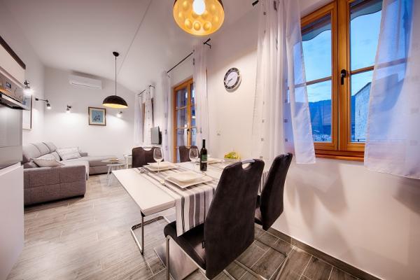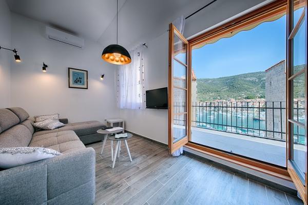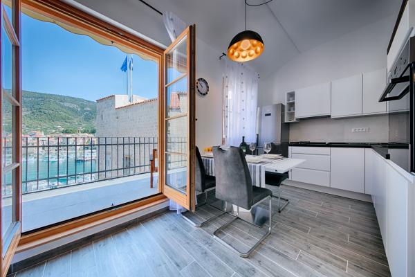 Het appartement is gelegen op de 2e en 3e verdieping in een oud stenen huis uit de 18e eeuw, eerste rij aan de waterkant en 20 meter van de zee. Op slechts een steenworp afstand ligt de Commune, een stenen toren, het symbool van Komiža. Het dichtstbijzijnde strand ligt op slechts 100 meter afstand. Op de tweede verdieping zijn er 2 tweepersoonskamers, elk met een eigen badkamer; op de derde verdieping is er een volledig uitgeruste keuken, eetkamer en woonkamer die verbonden zijn met een terras met een prachtig uitzicht over de baai. Het terras is geschikt om te eten en te rusten en woonkamer zijn voorzien van airconditioning. Er is een draadloze Wi-Fi-verbinding in het appartement. De woning is in 2017 gerenoveerd volgens de hoogste normen, met advies van conservatoren, waarbij gebruik is gemaakt van natuurlijke materialen. Kamer Demaria is in 2019 nieuw gerenoveerd en beschikt over een eigen badkamer. Het bevindt zich op de begane grond van het huis. De kamer is voorzien van een televisie, airconditioning, draadloos internet en een koelkast. Aan de voorzijde van de kamer bevindt zich een klein terras met een tafel en stoelen, waar de gasten gebruik van kunnen maken.