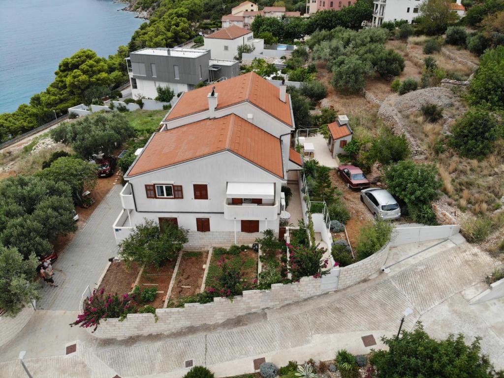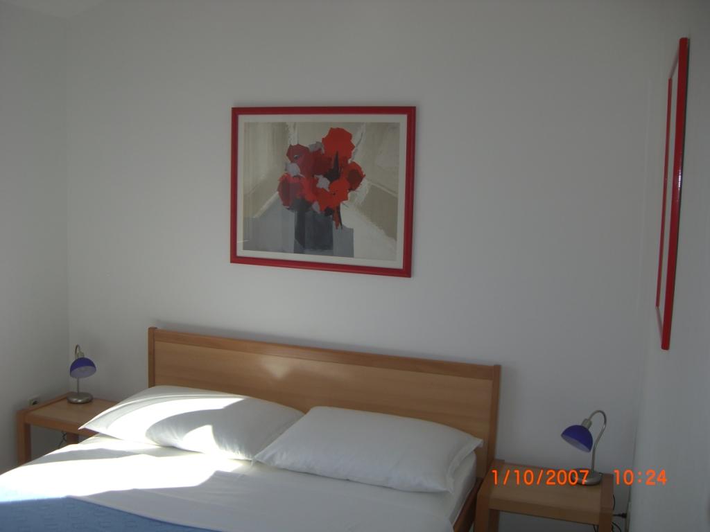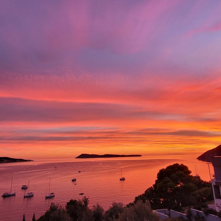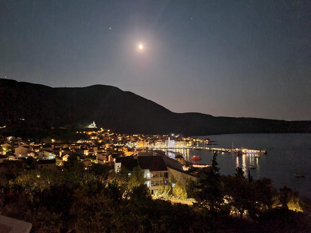 Huis Kolelastra ligt in het groen op de heuvel boven het stadsstrand (5 minuten lopen door het dennenpark naar het strand en slechts 8-10 minuten lopen naar de Riva, oftewel het centrum). Door de gunstige ligging hebben alle appartementen in huis Kolelastra een weids uitzicht over de hele baai, tot aan de Italiaanse bergen, die bij mooi weer te zien zijn. De bijgevoegde foto's tonen authentieke uitzichten vanaf het balkon van een individueel appartement en we delen ze graag met u, omdat we zelf vaak gefascineerd zijn door vurige kleuren of zilver voor ons. De appartementen zijn uitgerust met alles wat een mens nodig heeft voor een aangenaam verblijf en vakantie (van keukendoeken tot vriezers). Het huis beschikt over een eigen parkeerplaats in het groen en een watertank van 100 m³, zodat de gasten bij droog weer geen enkel watertekort zullen ervaren. Wat de gasten in hun beoordelingen vooral benadrukken: een prachtig uitzicht vanaf het balkon van alle appartementen, onberispelijke netheid, functionele uitrusting en vriendelijke gastheren.