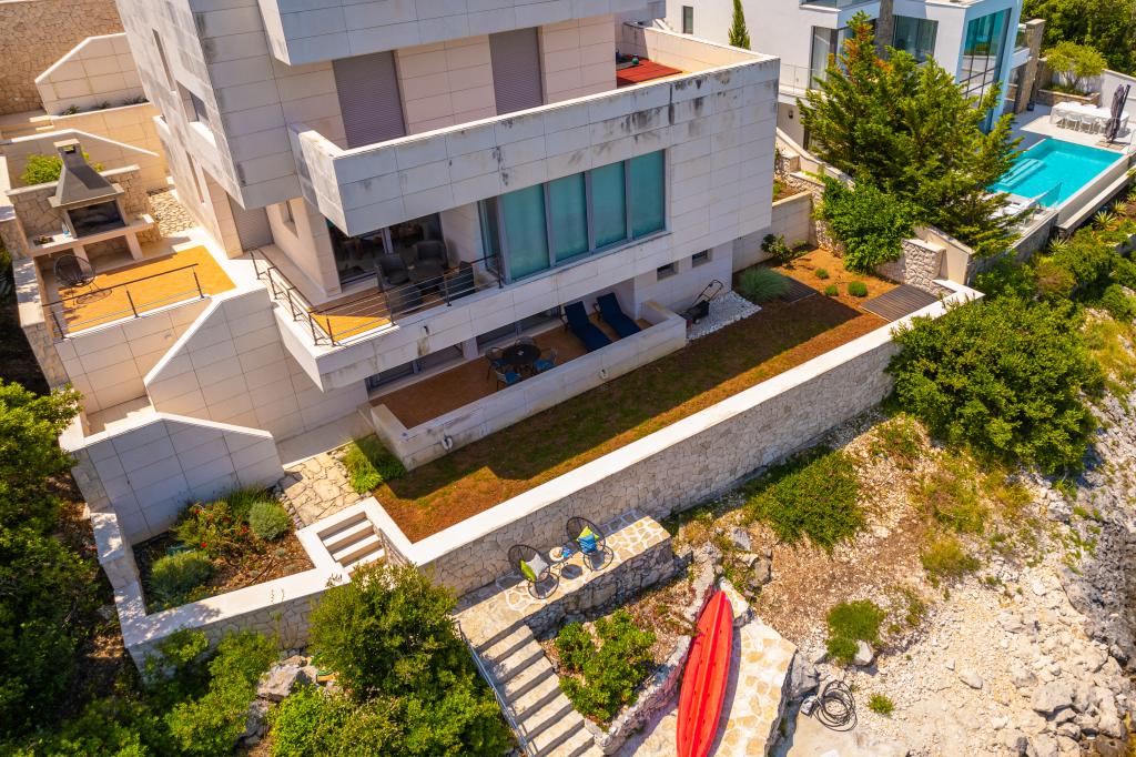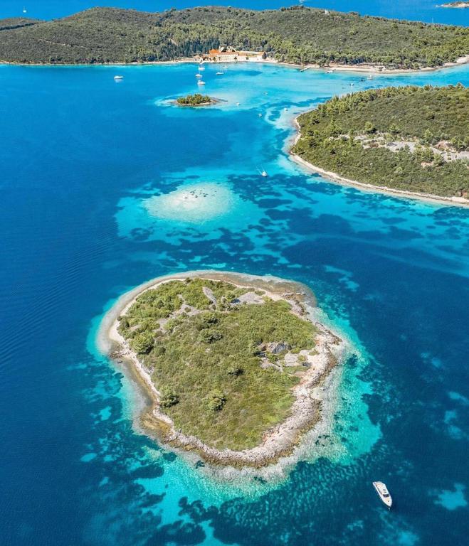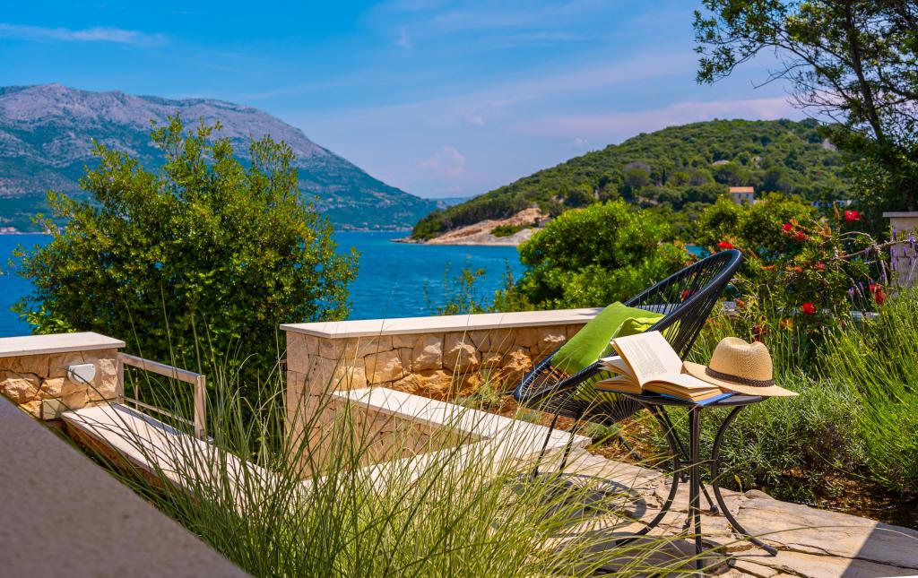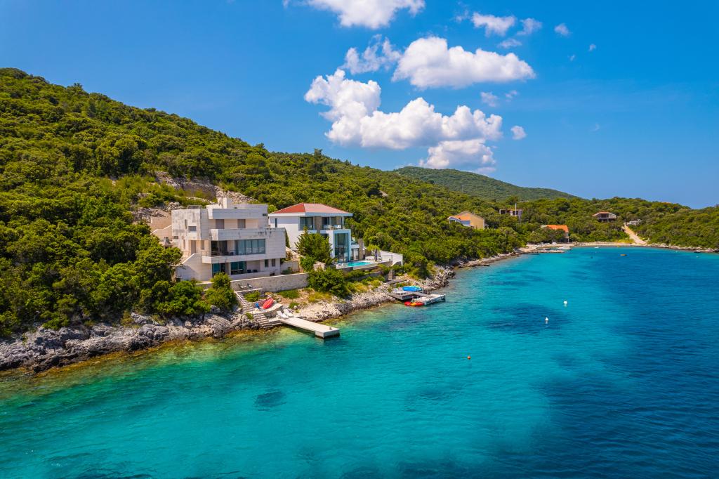 Villa Avantgarde - appartement direct aan zee voor 4 personen - zeer rustige baai - eiland Korčula - Kroatië Het is het werk van een beroemde Kroatische en wereldberoemde architect. Het ligt in een rustige baai, ca. 4 km van het stadscentrum. In de villa beschikt u over een comfortabel appartement van ca. 100 m2, bestaande uit 2 slaapkamers, een badkamer en een woonkamer met een goed uitgeruste keuken, eetkamer en woonkamer, van waaruit toegang is tot een ruim terras met directe toegang tot het privéstrand. Het strand ligt op 9 meter van het appartement. Er is slechts één appartement te huur in de Villa. Het wordt omgeven door verzorgde gazons, groen, vogelgezang en de zee. Er is afgesloten privéparkeergelegenheid beschikbaar voor gasten. De slaapkamer, woonkamer, eetkamer en terras kijken direct uit op zee. Het kan het hele jaar door gebruikt worden, omdat het voorzien is van centrale verwarming.