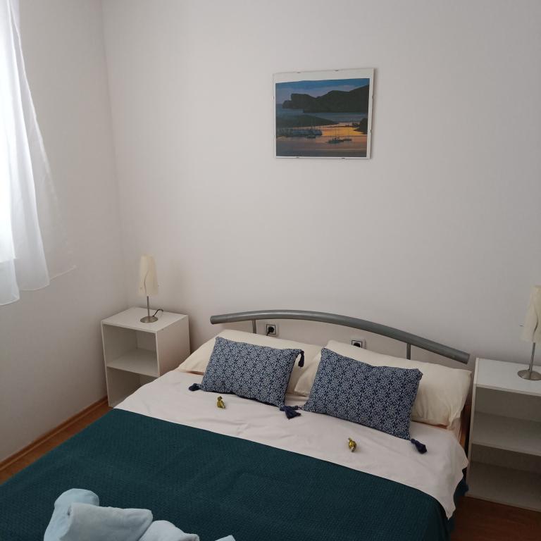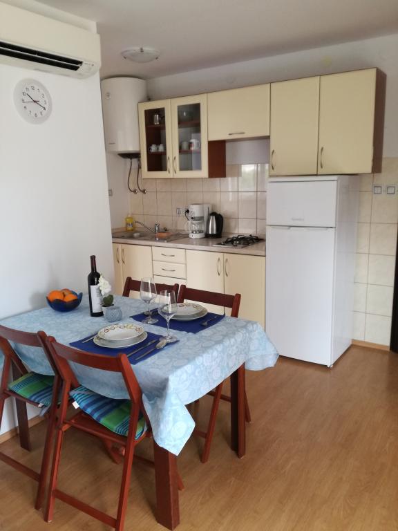 Appartementen ***, TV/SAT, airconditioning, balkon, aparte slaapkamer, parkeerplaats, 10 minuten van de zee en het strand, winkels en cafés, 25 minuten lopen naar de oude stad. Het huis is gelegen in een rustige buurt van het zwembad Gojko Arneri, dat een binnenzwembad en een fitnessruimte heeft en het hele jaar door gebruikt kan worden. Appartementen met een aparte slaapkamer met een tweepersoonsbed, een keuken in de woonkamer met alle benodigde voorzieningen, een volledig uitgeruste badkamer met douche, een balkon met tafel en vier stoelen en een parkeerplaats voor het huis. De prijs is inclusief: eindschoonmaak, parkeren, wifi, airconditioning, föhn, gedeelde barbecue, parasol en toeristenbelasting.
