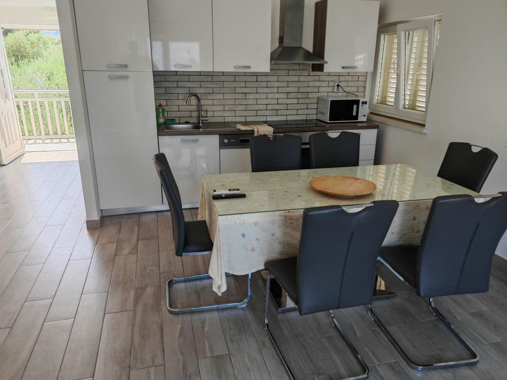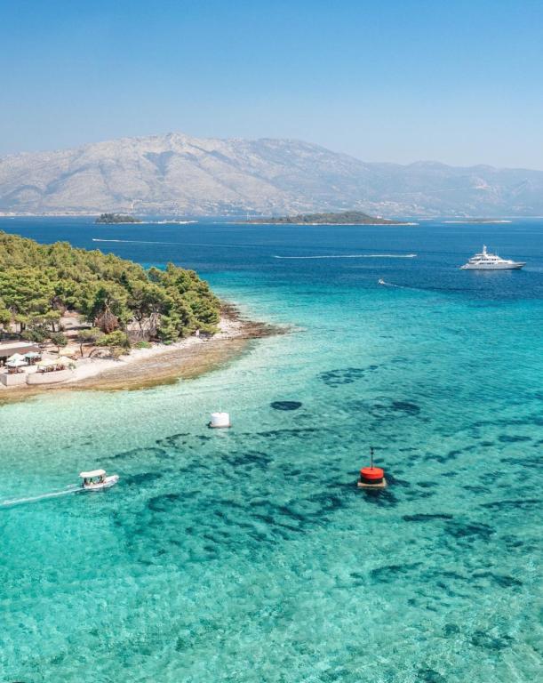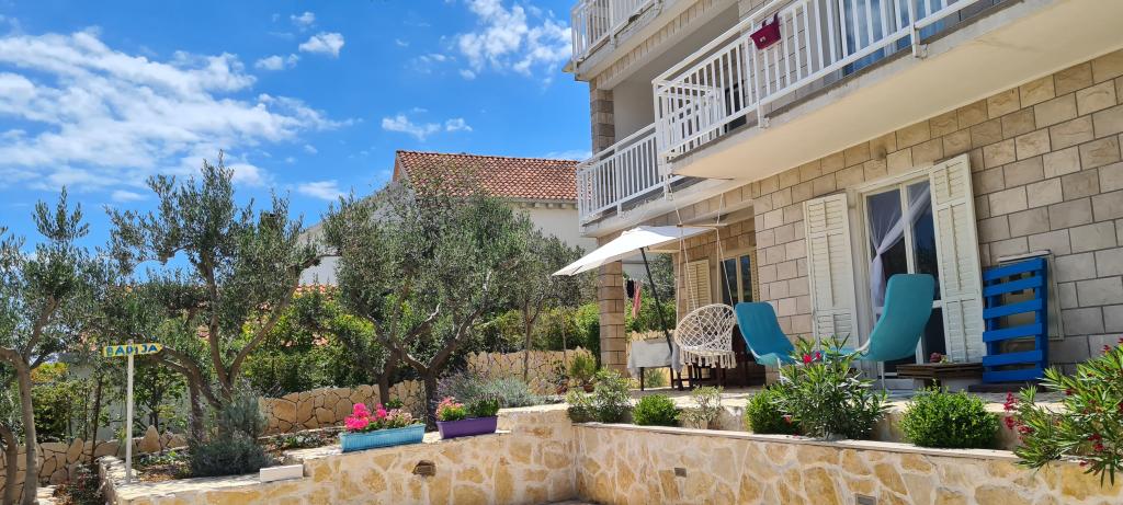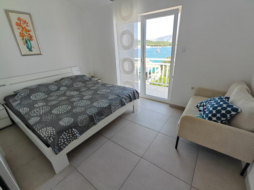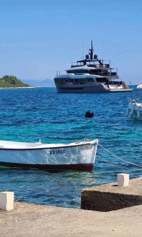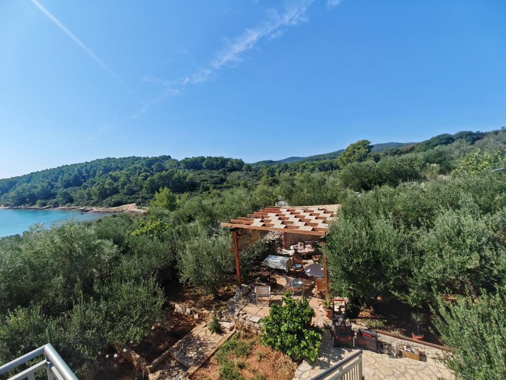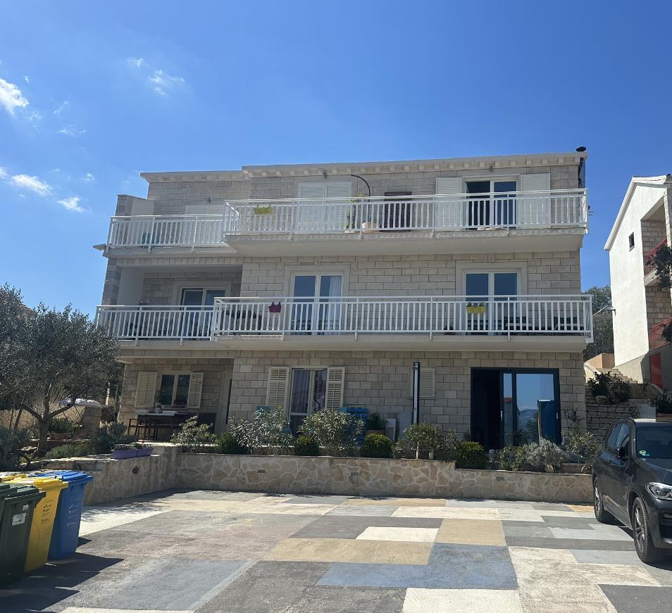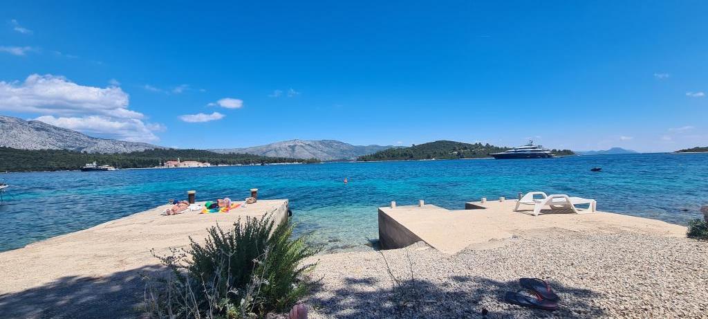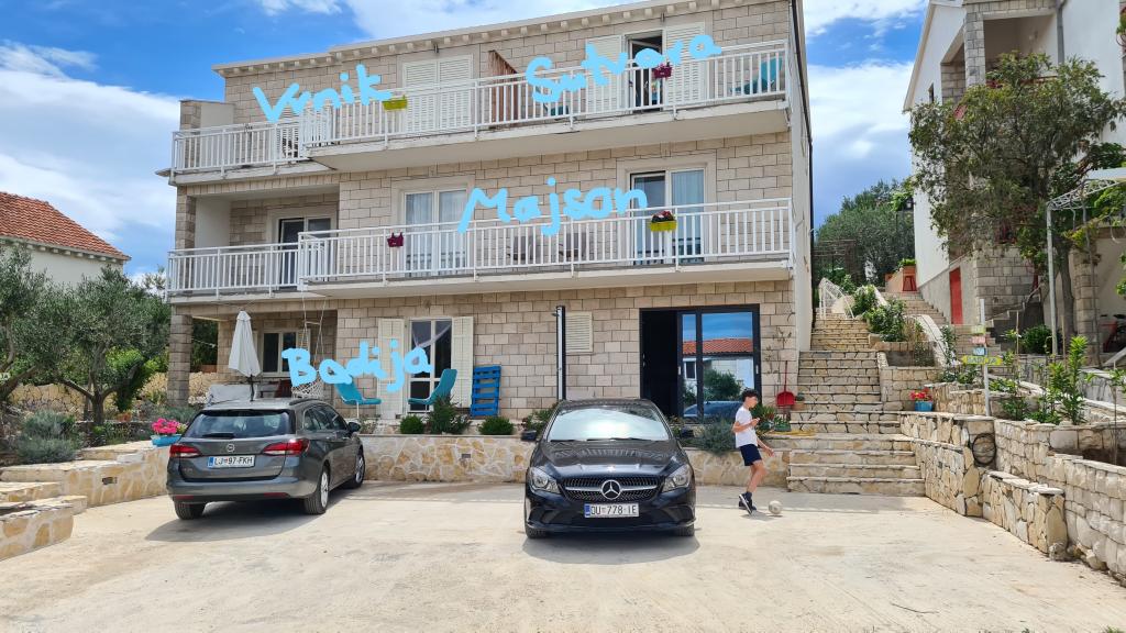 Škoji huis te huur op het eiland Korčula, het paradijs van Kroatië. Nieuw gebouwd en volledig uitgerust, gelegen tussen de stad Korčula en de stad Lumbarda langs de baai van Soline, biedt "Škoji" een buitengewoon uitzicht over de hele baai en de omliggende eilanden en eilandjes. Vier appartementen, traditionele mediterrane minimalistische architectuur en een ruime buitenwoonkamer, met barbecue, mediterrane tuin, sup-boards, fietsen en strandstoelen... alle nutsvoorzieningen... alles inbegrepen in het aanbod. Breng uw vakantie door op een plek waar u van de natuur kunt genieten en bereid maaltijden met extra vergine olijfolie uit de tuin. Er is een klein strandje onder het huis, genoeg om te relaxen en te zwemmen, en naast het strand wordt de speedboot Key Largo Sessa met 60 pk aangeboden, waarmee het ontspannend is om naar de nabijgelegen eilanden en baaien te varen, een prachtige ervaring . Er zijn vier parkeerplaatsen en er is overal WiFi beschikbaar. Volledig ingerichte appartementen Badija/4+2/, Majsan/4+2/, Sutvara/4+2/ en Vrnik/2+2/ met een prachtig uitzicht op de zee, terwijl de omliggende tuinen een ideale ruimte creëren voor de woonkamer , terwijl de inrichting rustig, rustgevend en eenvoudig is - zorg ervoor dat u zich hier op Korčula bij ons thuis voelt.