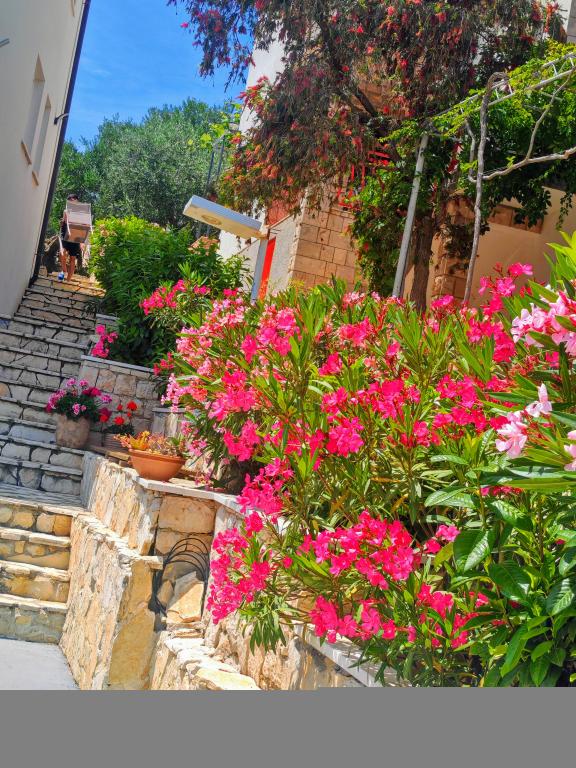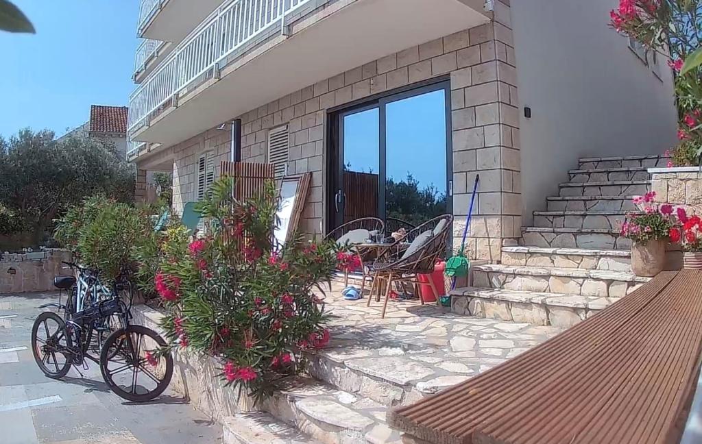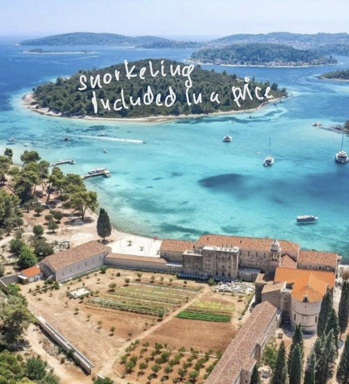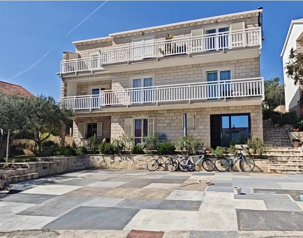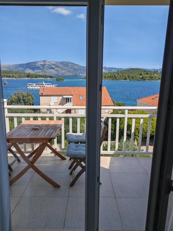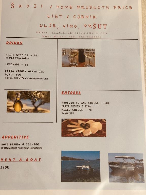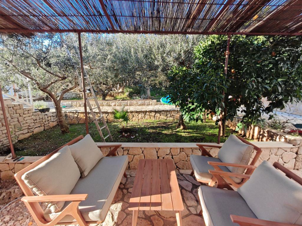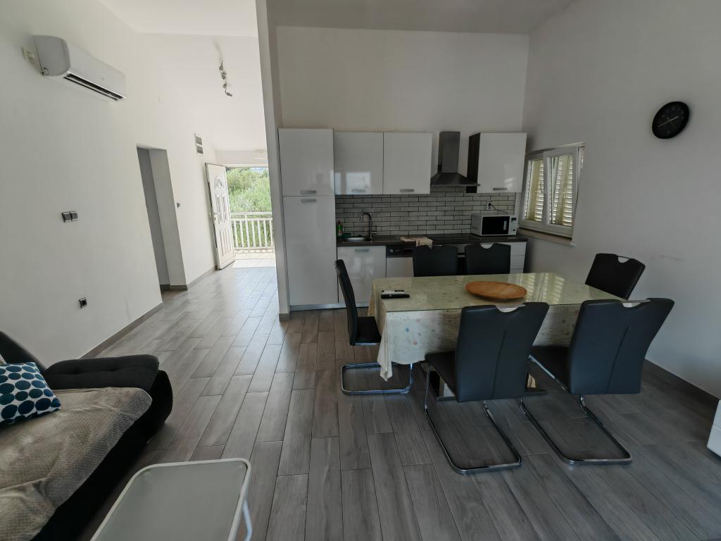 Škoji huis te huur op het eiland Korčula, het paradijs van Kroatië. Nieuw gebouwd en volledig uitgerust, gelegen tussen de stad Korčula en de stad Lumbarda langs de baai van Soline, biedt "Škoji" een buitengewoon uitzicht over de hele baai en de omliggende eilanden en eilandjes. Vier appartementen, traditionele mediterrane minimalistische architectuur en een ruime buitenwoonkamer, met barbecue, mediterrane tuin, sup-boards, fietsen en strandstoelen... alle nutsvoorzieningen... alles inbegrepen in het aanbod. Breng uw vakantie door op een plek waar u van de natuur kunt genieten en bereid maaltijden met extra vergine olijfolie uit de tuin. Er is een klein strandje onder het huis, genoeg om te relaxen en te zwemmen, en naast het strand wordt de speedboot Key Largo Sessa met 60 pk aangeboden, waarmee het ontspannend is om naar de nabijgelegen eilanden en baaien te varen, een prachtige ervaring . Er zijn vier parkeerplaatsen en er is overal WiFi beschikbaar. Volledig ingerichte appartementen Badija/4+2/, Majsan/4+2/, Sutvara/4+2/ en Vrnik/2+2/ met een prachtig uitzicht op de zee, terwijl de omliggende tuinen een ideale ruimte creëren voor de woonkamer , terwijl de inrichting rustig, rustgevend en eenvoudig is - zorg ervoor dat u zich hier op Korčula bij ons thuis voelt.