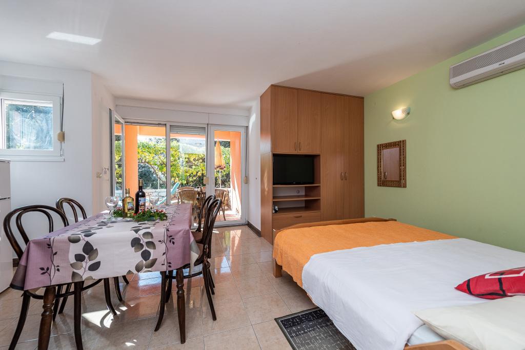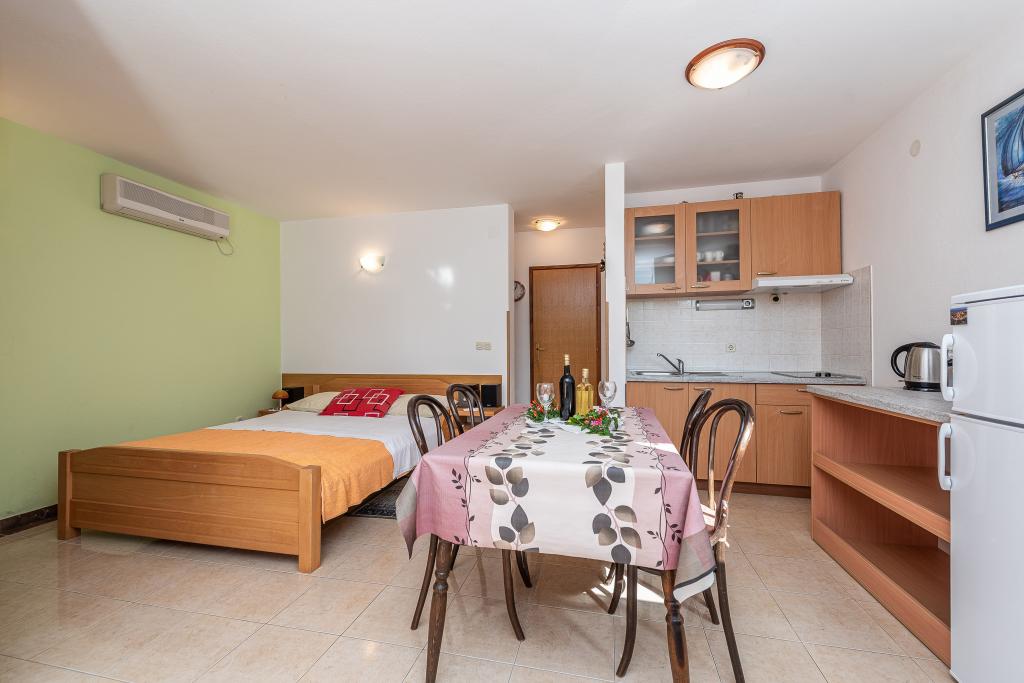 Volledig en modern ingerichte appartementen in een rustige buurt van Kožino, op 50 meter van het strand, op 5 minuten lopen van de winkels. De faciliteit bevat ook een overdekte ruimte om te socialiseren met een aangrenzende open haard en twee buitendouches! Er is parkeergelegenheid naast de faciliteit voor elk voertuig.