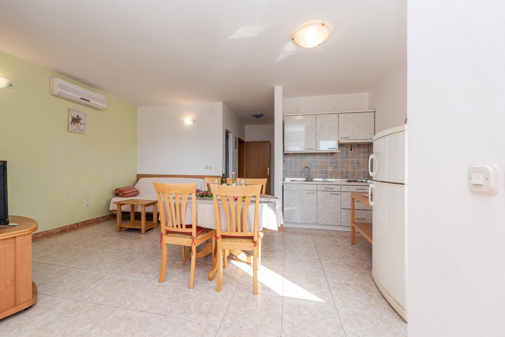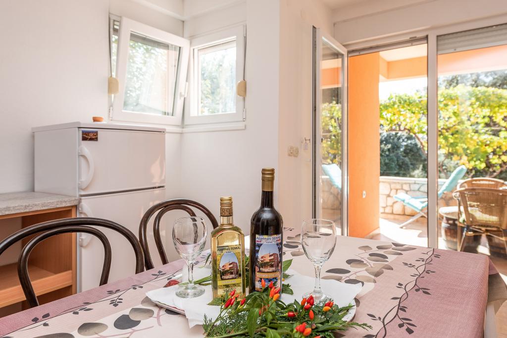 Het verblijf was gevuld met natuurgeluiden en rust dankzij de overvloed aan groen rondom het appartement. We voelden ons er helemaal thuis. Mooi ingericht, van alle gemakken voorzien en schoon appartement, en buiten is er een tuin met een barbecue en een douche. Het bed was iets minder comfortabel. We hebben een aangenaam verblijf gehad in het gezelschap van de eigenaren, die ons een warm welkom gaven. Goed onderhouden stranden, schoon water, natuurlijke schaduw. Er zijn diverse winkels en goede restaurants in de buurt. Er zijn veel wandelmogelijkheden. Het beste is het veelal schaduwrijke macadampad naar Petrčane. Het is ook mogelijk om in de stad een openluchtbioscoop te bezoeken.