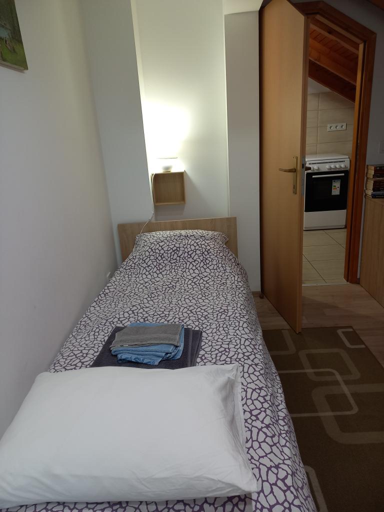 Inlusief wel Toeristenbelasting.Tot uw beschikking staat een parkeerplaats, binnenplaats, barbecue, terras, tuin - boomgaard, puur natuur. Het appartement is uitgerust met het volgende: koelkast met vriesvak, servies, gasfornuis, 2 kookplaten, koffiezetapparaat, handdoeken, tweepersoonsbed, bedden voor één persoon, kinderbed (kinderbet) indien nodig, douche, wifi... Mogelijke activiteiten : •fietsen •snelwandelen •hardlopen •bergbeklimmen •bordspellen (mannen worden niet boos, schaken, zwarte piet...) •badminton •winkelen •musea bezoeken, kastelen, kerken, lokale familieboerderijen... Huisdieren: toegestaan 2 small of 1 medium/large (extra kosten voor huisdieren) Roken: toegestaan buiten het gebouw Wij bieden geen ontbijt aan, maar in de koelkast heb je spullen staan die je vrij mag consumeren (zonder meerprijs) zoals paté, spread, yoghurt, melk, sap...