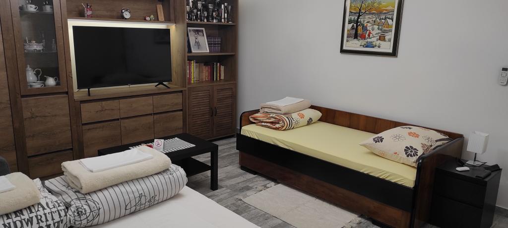 Volledig en modern uitgerust appartement (airconditioning, vloerverwarming, LED-verlichting + industriële verlichting met afstandsbediening, 2 tv's 50", gratis wi-fi, etc.) voor 1 - 5 personen + een extra bed voor een persoon. TP Het appartement is gelegen in het centrum van Križevci, in de hoofdstraat van de oude stad, en winkels en restaurants zijn vlakbij!Alles wat je nodig hebt (winkels, restaurants, café-bars, geldautomaten, bank, apotheek, bezienswaardigheden, musea, galerijen, stadszwemmen zwembaden, sportterreinen) zijn te voet in een paar minuten te bereiken.Het personeel spreekt: Engels, Kroatisch
