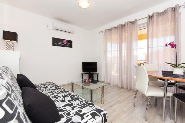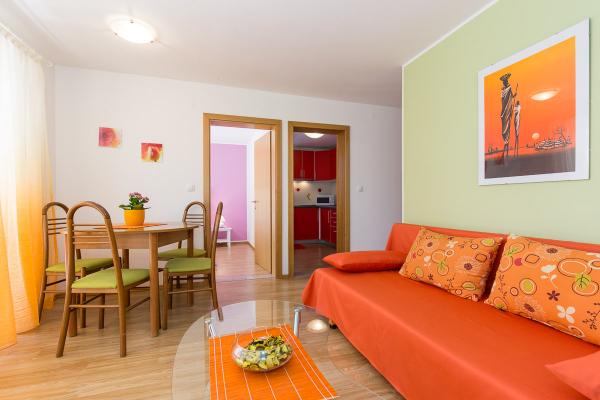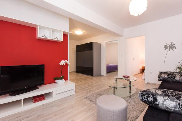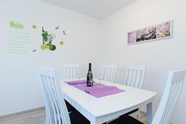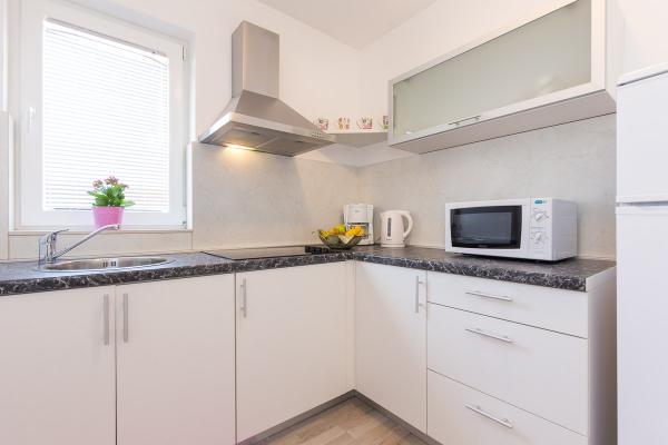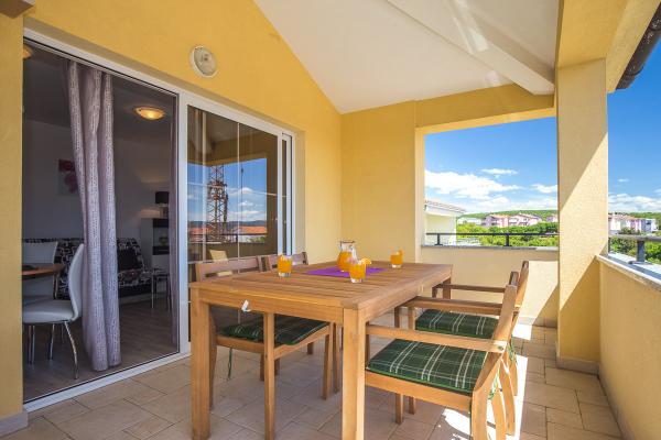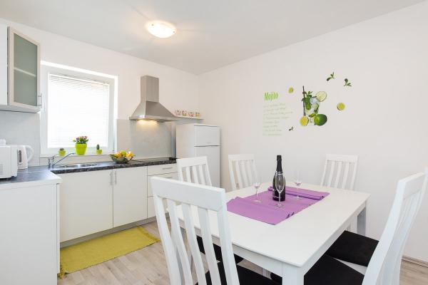 Op een rustige locatie van het stadje Krk langs de rand van de groenzone ligt de nieuw gebouwde eengezinswoning Zoran. Het huis heeft drie appartementen met elk twee slaapkamers. Op de begane grond is er een barbecue en een tuin om te gebruiken. In de buurt zijn fiets- en wandelpaden van meer dan 20 km lang die door olijfgaarden, velden en natuur lopen. Het oude centrum van Krk ligt op 7 minuten. gemakkelijke wandelingen, waar u een grote keuze aan restaurants, bars en faciliteiten heeft voor uw avondontspanning aan zee.