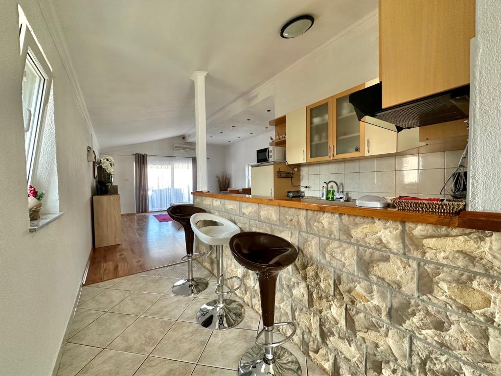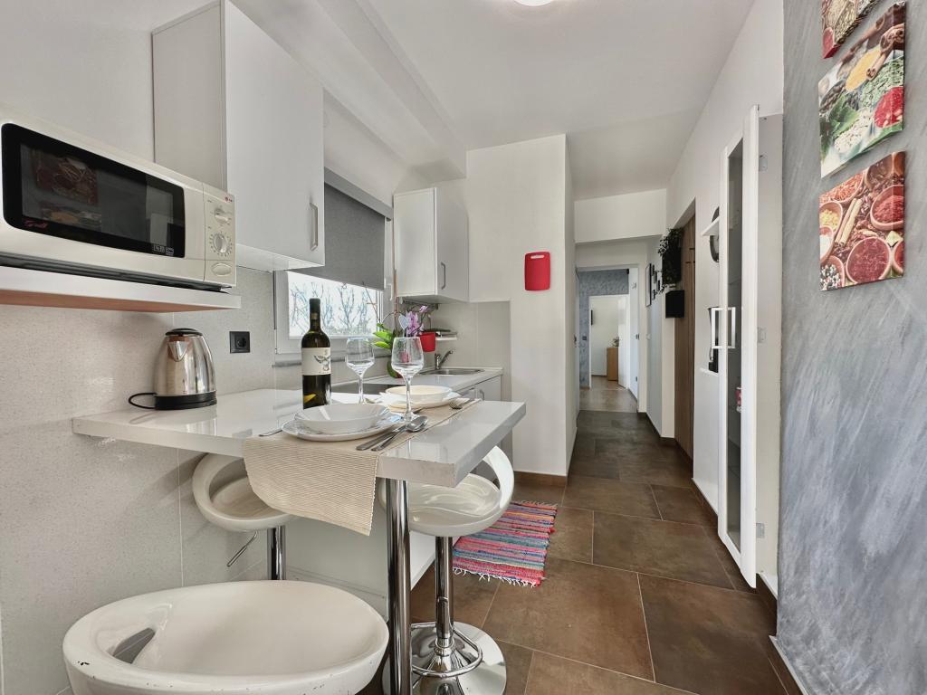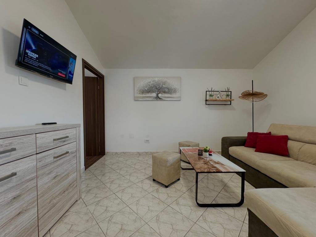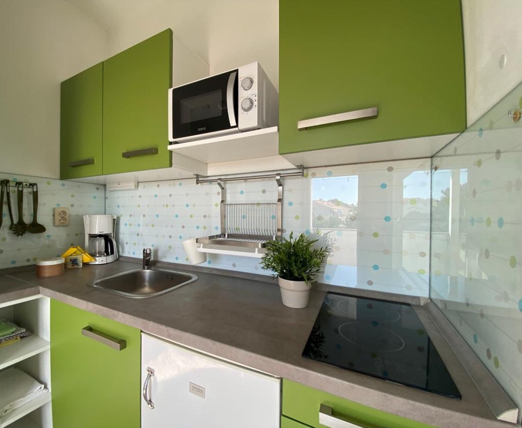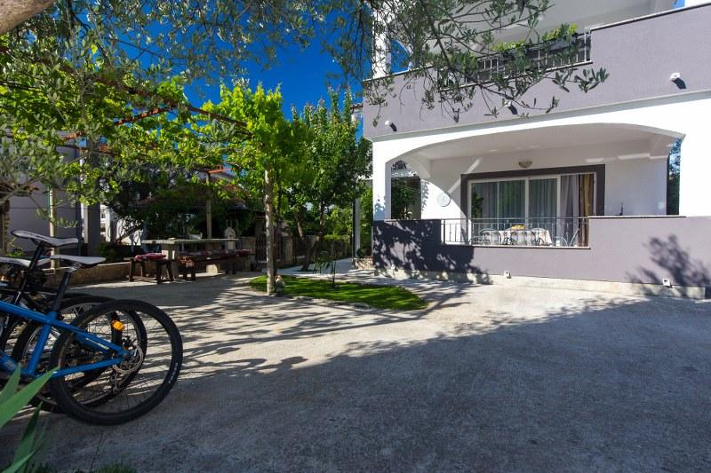 Het huis ligt op een zeer gunstige locatie, in een rustige buurt, op een paar minuten lopen van het strand en tien minuten lopen naar het centrum. Het complex bestaat uit 5 appartementen. Drie daarvan zijn studio's voor maximaal 2 personen, één appartement voor maximaal 3 personen en een appartement van 75 vierkante meter voor maximaal 5 personen. Elk appartement beschikt over een volledig uitgeruste keuken, een mooi balkon of terras, een eigen ingang en een beveiligde parkeerplaats. U kunt gebruikmaken van een gemeenschappelijke tuin met barbecuefaciliteiten. ***Huisdieren zijn welkom na voorafgaande aankondiging en tegen een extra vergoeding van 12 euro per dag (ter plaatse te betalen).