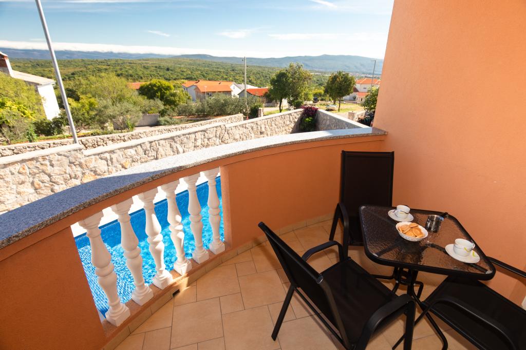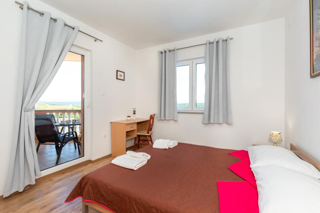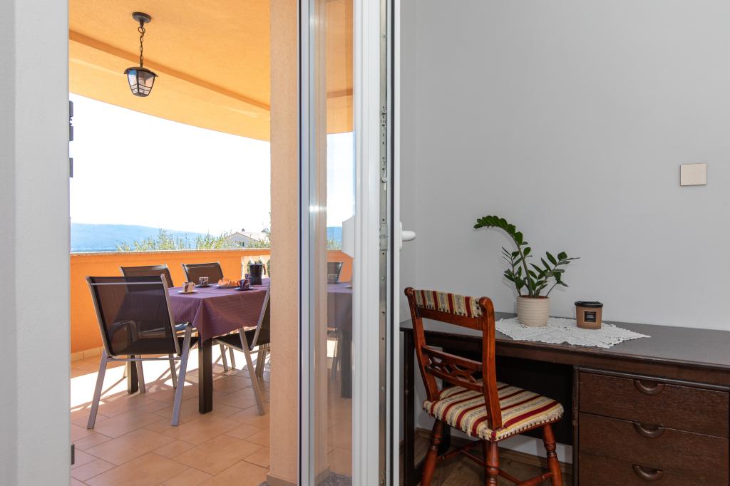 Een zeer vriendelijk welkom, de eigenaar woont in hetzelfde huis en hebben er altijd voor ons geweest. Het appartement is volledig nieuw, grote ingerichte, airconditioning, tv, gratis wifi, een mooi balkon met uitzicht op de stad Krk en de zee, een grote slaapkamer en een zeer ruime keuken, een eigen parkeerplaats voor de gasten. De zee ligt op ongeveer 3 kilometer afstand, dus dit appartement is ideaal voor auto's en motorfietsen toeristen. Zeer aan te bevelen!