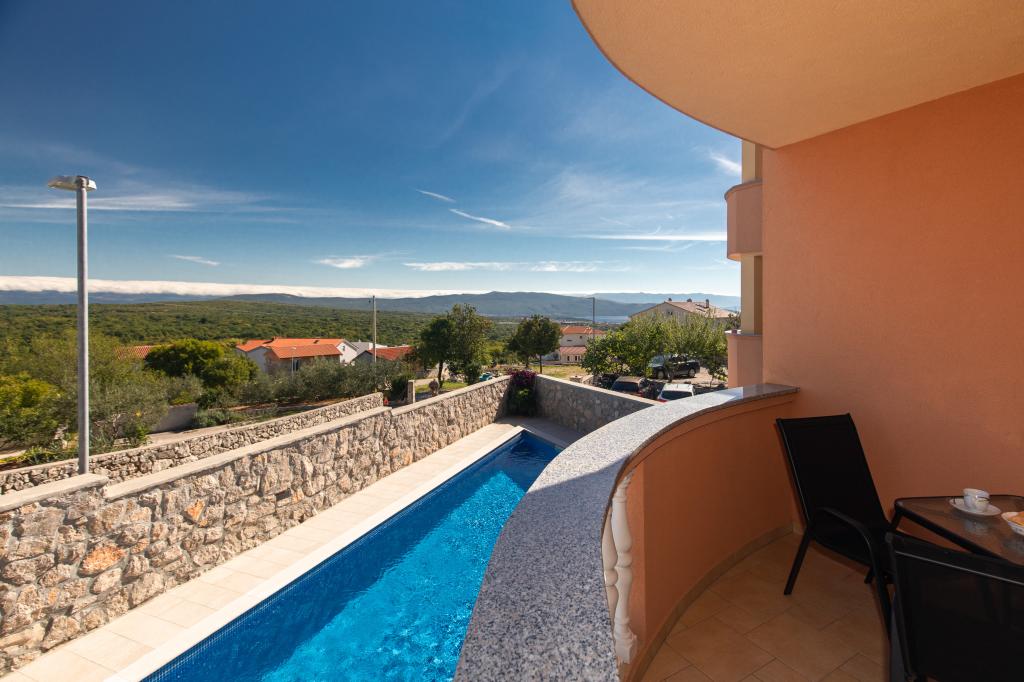 Het dorp Salatić ligt op ongeveer 3 km van de stad Krk, op een hoogte van ongeveer 140 m, met een aangenaam mild klimaat en frisse lucht. Hieruit strekt zich een prachtig uitzicht uit van Učka, over Velebit helemaal tot aan de prachtige blauwe zee en de Kvarner-archipel (Golog otok, Grgura, Cres...) Appartementen bestaan uit een (A2 2) of twee (A4 2) tweepersoonskamers , keuken, eetkamer, woonkamer, badkamer en balkon. ) Balkons met het reeds genoemde prachtige uitzicht zijn de perfecte plek om te socializen tijdens het diner of voor een rustige middagrust. Het is uitgerust met alle nodige apparaten die uw verblijf nog aangenamer en mooier zullen maken. We bieden ook een groot zwembad met zout water, een perfecte plek voor rust, plezier en het vermijden van de drukte op de stranden. De appartementen liggen op slechts 5 minuten rijden met de auto van het centrum van Krk (3,5 km) en vele stadsstranden. De nederzetting is zeer goed verbonden met het verkeer, wat u enorm zal helpen bij het verkennen van de landelijke delen van het eiland