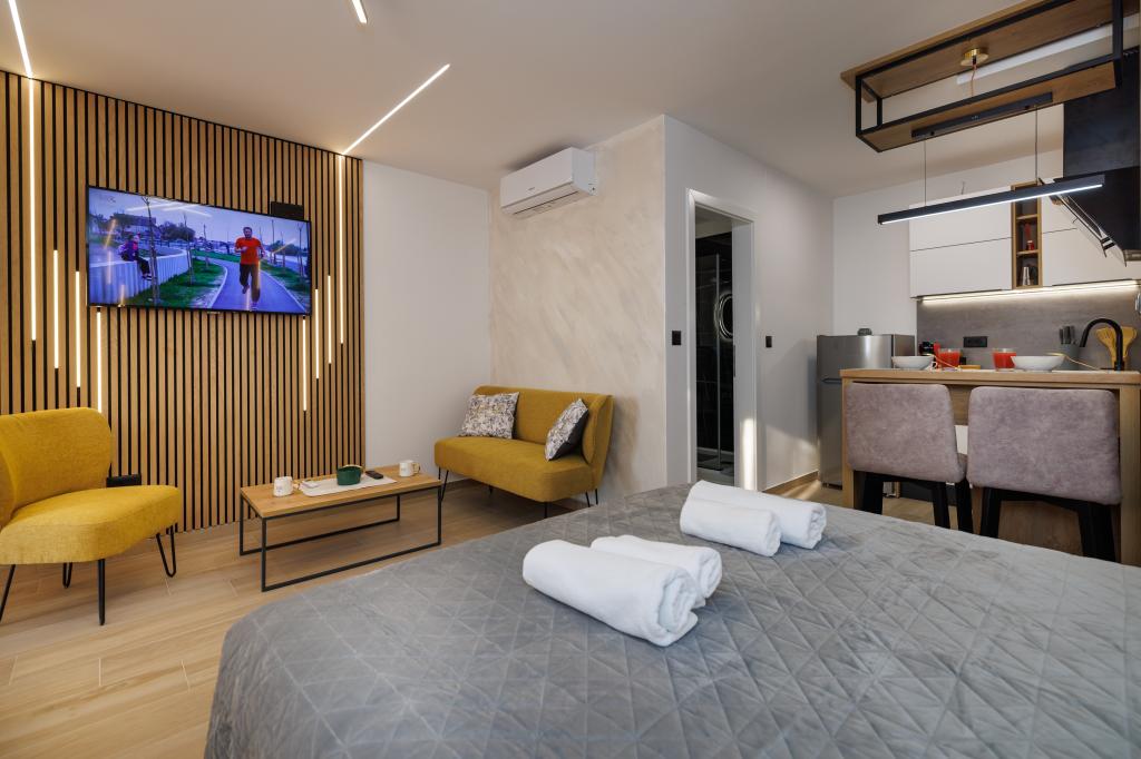 We verbleven een week in augustus in dit prachtige, gloednieuwe appartement. Ideaal voor het kijken naar een rustige plek en een uitstekende uitvalsbasis om te l 'eiland Krk bezoeken 2 personen. De eigenaar en zijn familie zijn zeer gastvrij, vriendelijk en behulpzaam voor alles. Ik beveel het aan alle