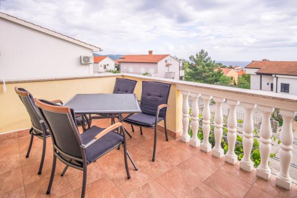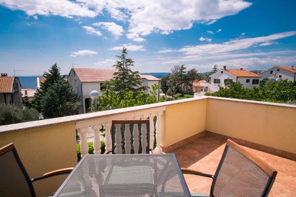 Groot, prachtig ingericht appartement in een rustig deel van Krk. Geweldig groot bed, terras met uitzicht op zee, grote tv, geschikt voor huisdieren...