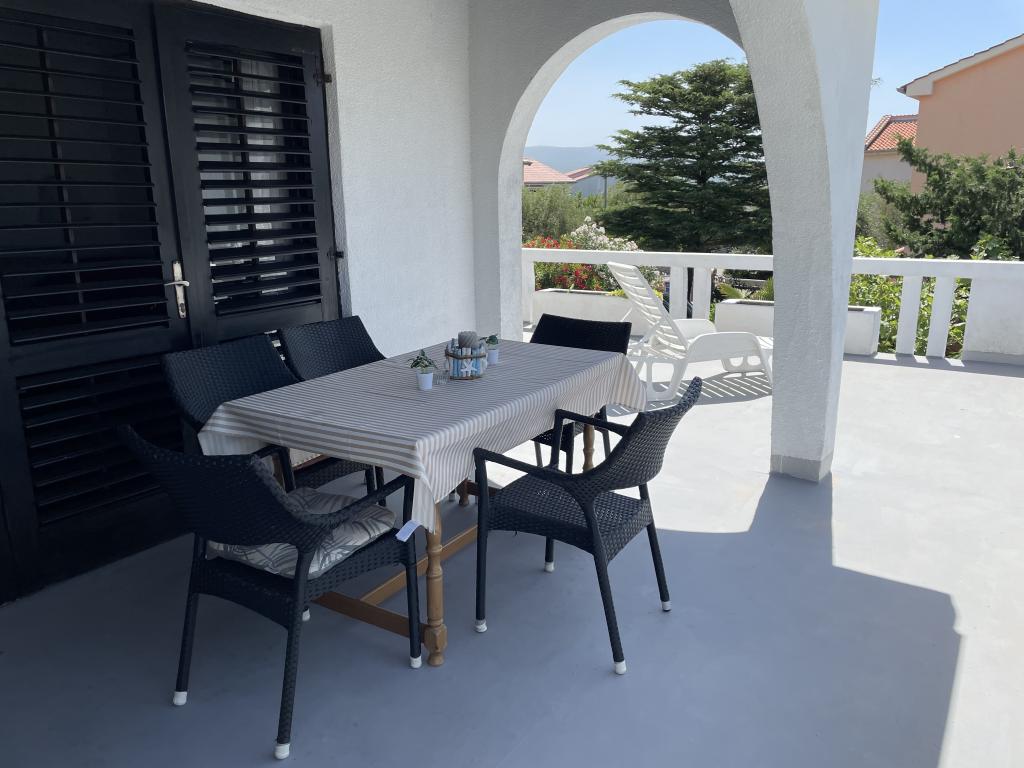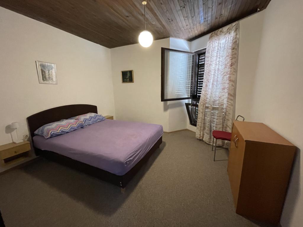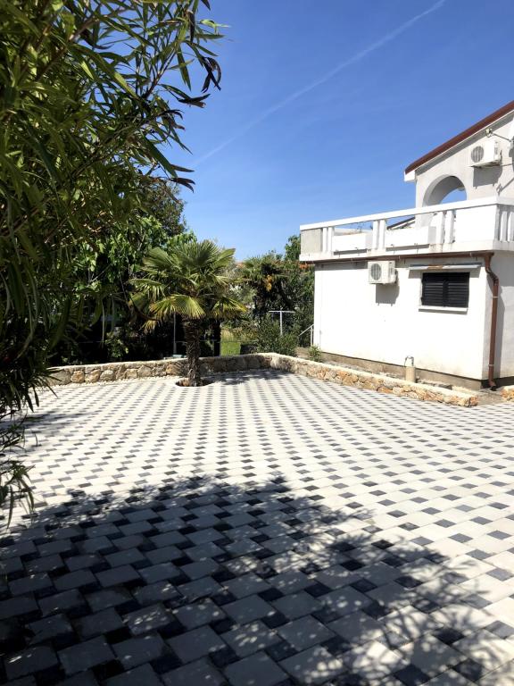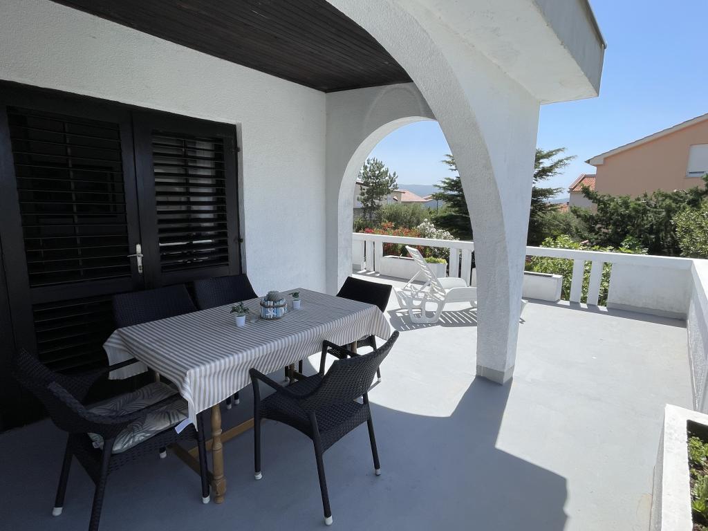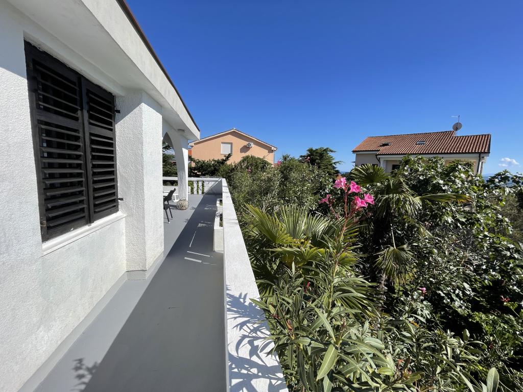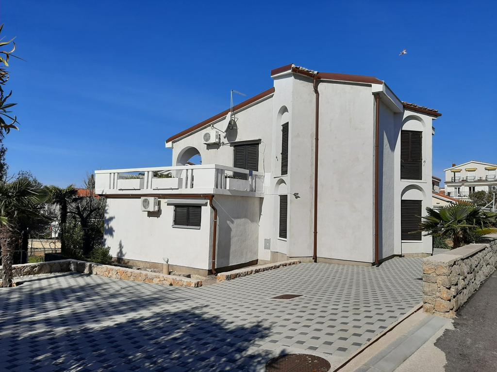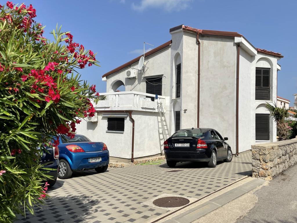 Eengezinswoning met 2 grote appartementen 80m2 omgeven door groen met vriendelijke gastheren. Rustig deel van Krk met gezinswoningen. De familie huurt al meer dan 30 jaar. Het bovenste appartement bevat een groot terras met een prachtig uitzicht, keuken en eetkamer, woonkamer, 2 slaapkamers en een badkamer. Het lager gelegen appartement bevat een terras in de schaduw, keuken en eetkamer, woonkamer, 2 slaapkamers en een badkamer. De faciliteit ligt op 10 minuten lopen naar de zee. Dicht bij winkels, restaurants en benzine ligt op 3 minuten lopen. Priveparkeren. .