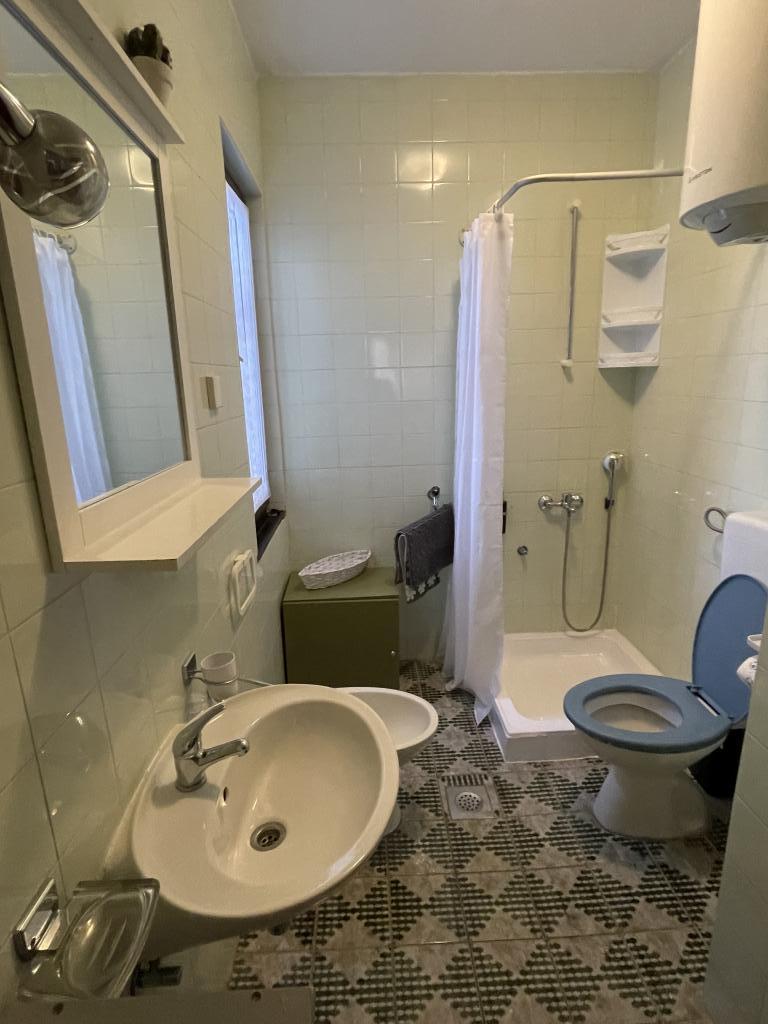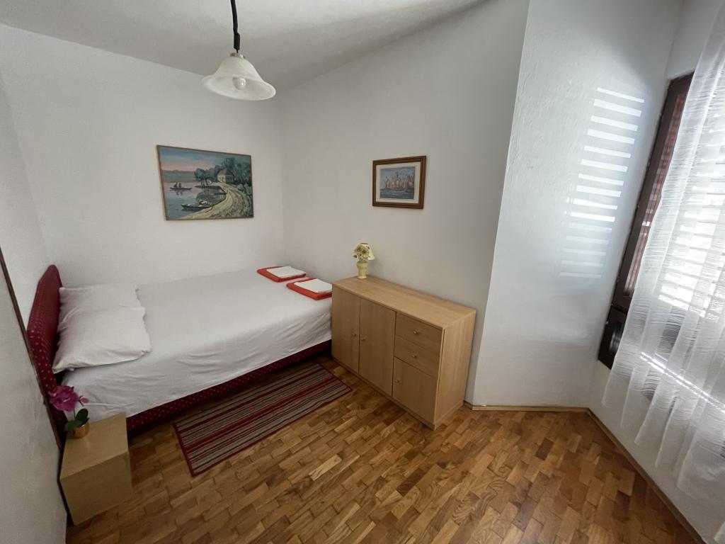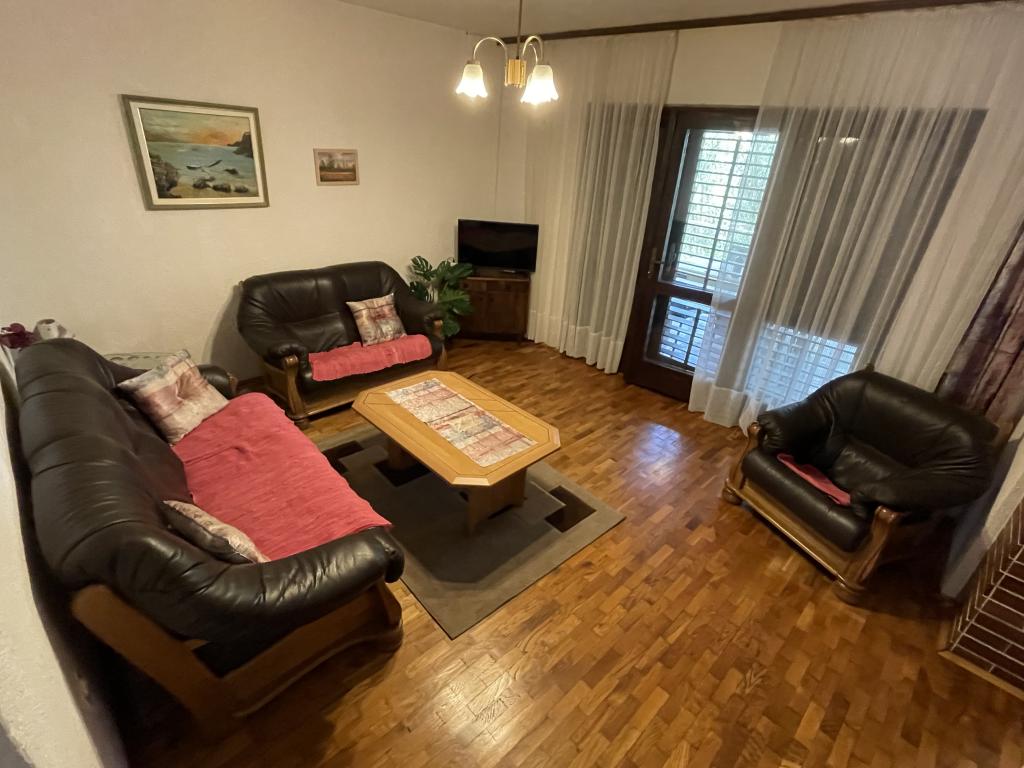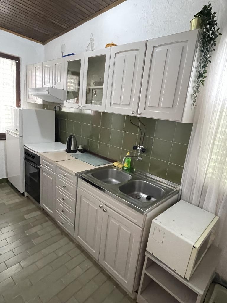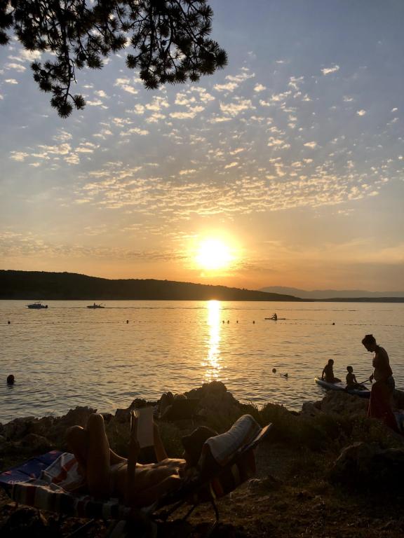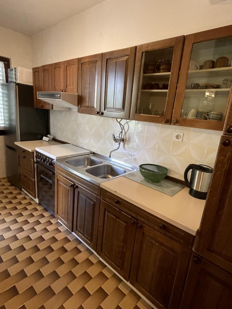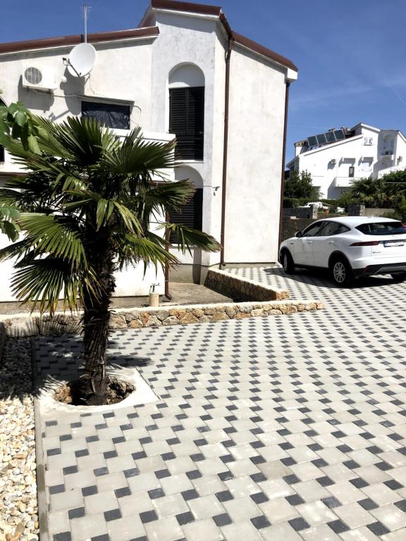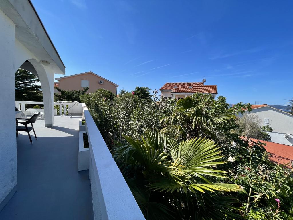 Eengezinswoning met 2 grote appartementen 80m2 omgeven door groen met vriendelijke gastheren. Rustig deel van Krk met gezinswoningen. De familie huurt al meer dan 30 jaar. Het bovenste appartement bevat een groot terras met een prachtig uitzicht, keuken en eetkamer, woonkamer, 2 slaapkamers en een badkamer. Het lager gelegen appartement bevat een terras in de schaduw, keuken en eetkamer, woonkamer, 2 slaapkamers en een badkamer. De faciliteit ligt op 10 minuten lopen naar de zee. Dicht bij winkels, restaurants en benzine ligt op 3 minuten lopen. Priveparkeren. .