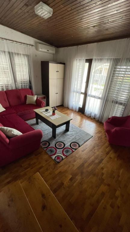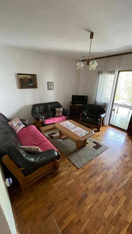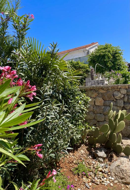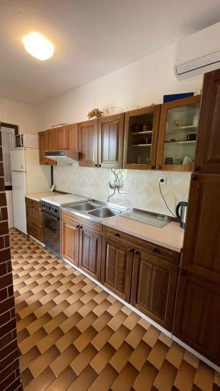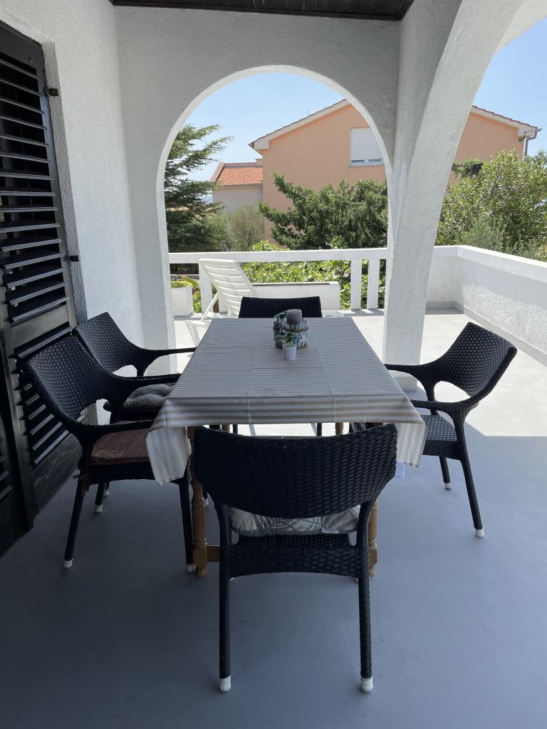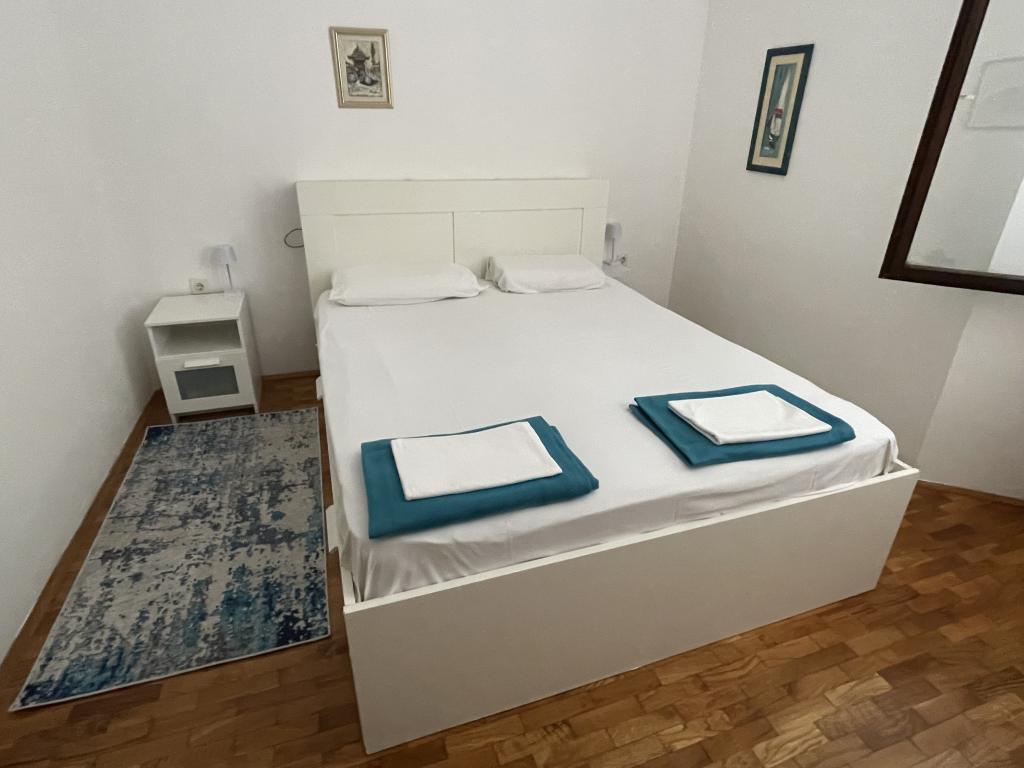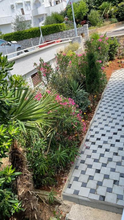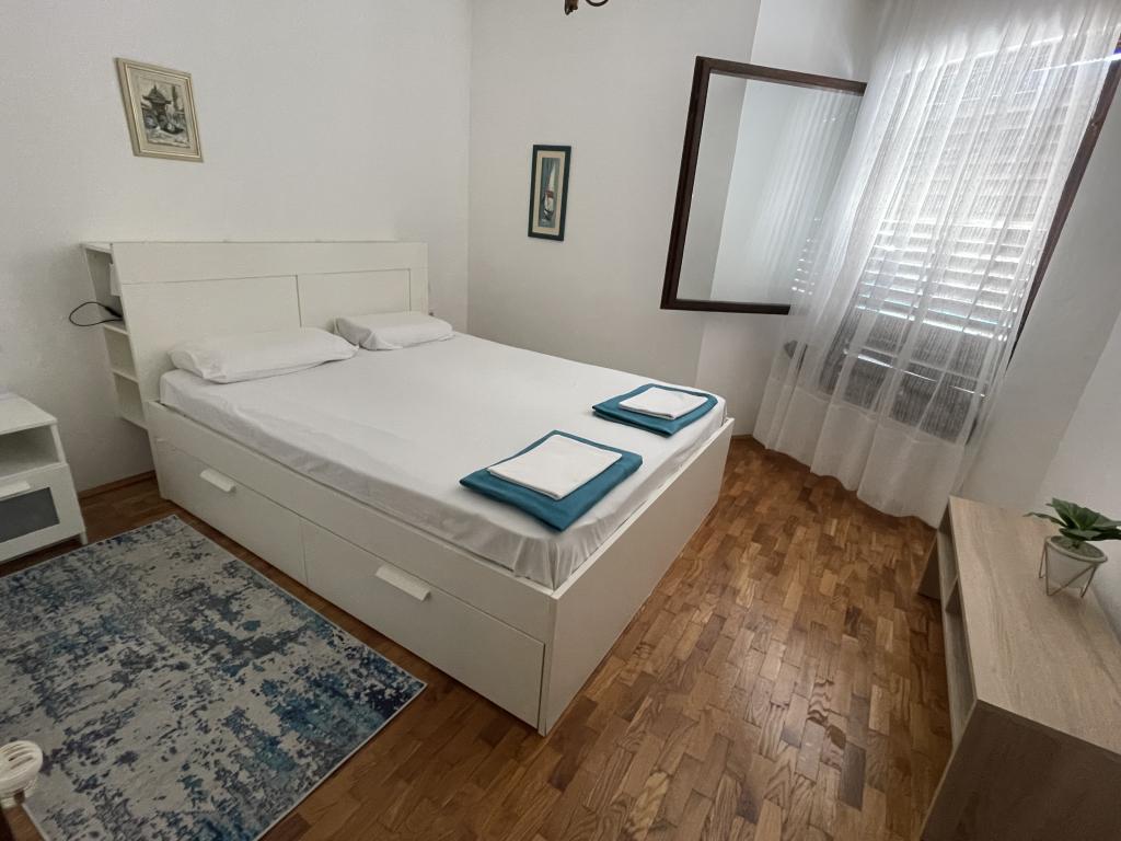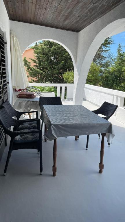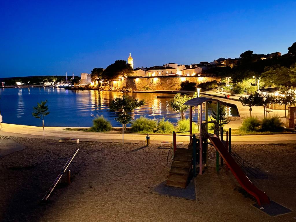 Eengezinswoning met 2 grote appartementen 80m2 omgeven door groen met vriendelijke gastheren. Rustig deel van Krk met gezinswoningen. De familie huurt al meer dan 30 jaar. Het bovenste appartement bevat een groot terras met een prachtig uitzicht, keuken en eetkamer, woonkamer, 2 slaapkamers en een badkamer. Het lager gelegen appartement bevat een terras in de schaduw, keuken en eetkamer, woonkamer, 2 slaapkamers en een badkamer. De faciliteit ligt op 10 minuten lopen naar de zee. Dicht bij winkels, restaurants en benzine ligt op 3 minuten lopen. Priveparkeren. .