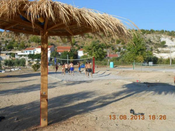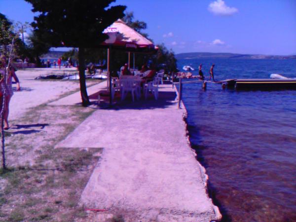 Op het strand zijn er faciliteiten voor: voetbal, tennis, bagminton, schommels voor kinderen, bowlingbaan. Het strand zelf heeft een lichte toegang tot de zee (voor kinderen en inferieure zwemmers) en is bedekt met grind. Er is ook een deel van het rotsstrand met steeds minder diepte om te duiken en waar trappen zijn om uit de zee te komen. Het strand heeft ook een natuurlijk gedeelte met een rotsachtige kust, waar zwemmen en zonnebaden ook mogelijk is. Caffebar direct aan het strand. 1000 m afstand is de monding van Zrmanja waar raften mogelijk is. De prachtige Cerovec-grotten (17 km) met stalactieten. Bezoek aan Zadar met veel musea en oudheden, zeeorgels (als zeldzaamheid in de wereld) en groeten aan de zon (30 km). Plitvicemeren op ongeveer 70 km afstand. Paklenica National Park, Krka-watervallen. .