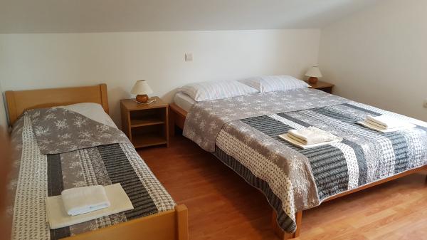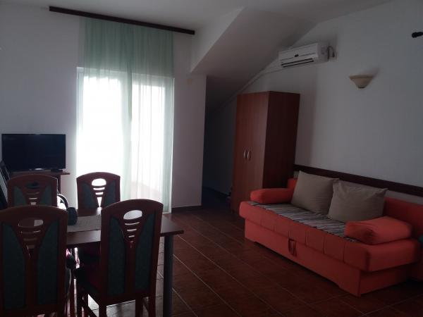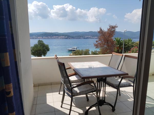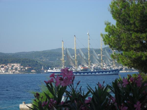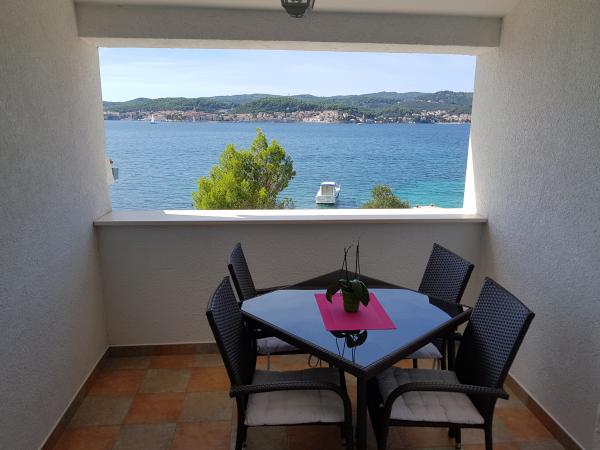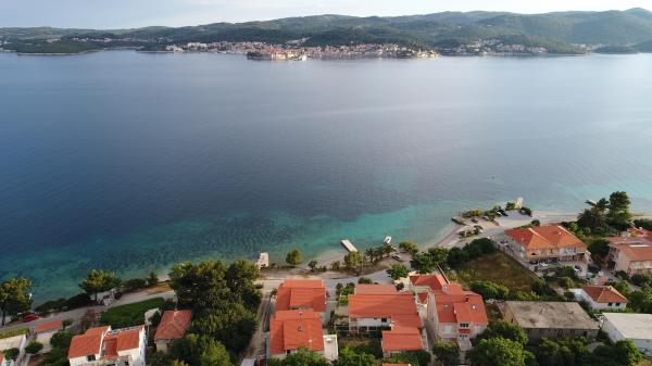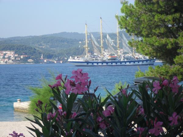 Zeer mooie en vriendelijke gastheren. Plaats met een prachtig uitzicht op Korcula. Rustig en vredig, de weg aan de voorkant van het gebouw is niet te belastend. Adviseren