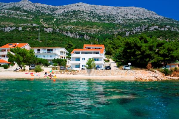 In de eerste plaats, aardige eigenaren! We kregen een veel grotere kamer voor dezelfde prijs, juist omdat het buiten het seizoen, en de kamer was gratis - niet helemaal kastijden over. Huisvesting schone kamer, goed uitgeruste keuken, kunt u veilig koken van voedsel je voor dat iemand wil. Op de dag van vertrek de eigenaren ons uitgenodigd om een afscheid bier voor zichzelf :) Als voor het gebied is vooral rust en stilte, op slechts enkele tientallen meters twee restaurants, waarvan er één (grotere - niet meer weet de naam niet) serveert heerlijk eten. Gegrilde vis wereldkampioenschap. De eigenaren hebben hun Panorama restaurant, dat zich boven het huis - maar als gevolg van het terrein - het bedrag dat je moet ofwel er met de auto of voor te bereiden om te klimmen. Het strand midden in de voorzijde van het gebouw, de weg is niet erg druk, dus de nabijheid is niet belastend. We gingen naar deze plek vanwege het windsurfen en hier, helaas, de keuze van de locatie was niet helemaal een schot in - de wind kwam slechts één keer tijdens de 9-daags verblijf. Maar de plek veilig kan worden bereikt met de auto dus dit is geen probleem - in ruil krijgen we rust, stilte en lege strand (we waren in de eerste helft van juni) Avond uitzicht vanaf het balkon van Korcula hebben de hele tijd in het geheugen. Over het algemeen zeer aan te bevelen !!!