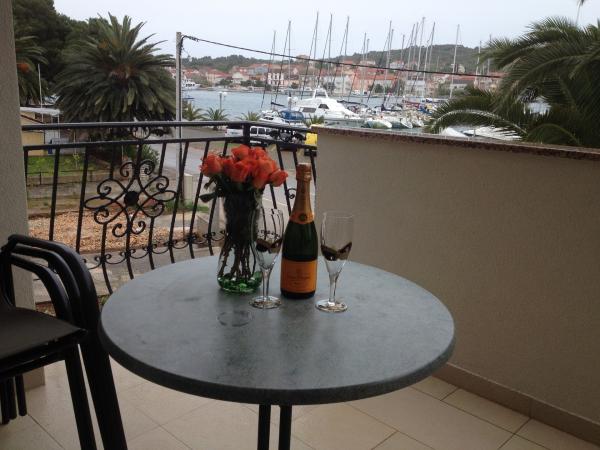 Nieuwe appartementen in Kukljica, gelegen in Marina, aan de boulevard Lungo-merrie. Een 5 minuten lopen naar het centrum van de stad en op 5 minuten lopen naar het strand, Zelena Punta. De faciliteit heeft 6 appartementen, 2-slaapkamer en 4 slaapkamers. Elk appartement beschikt over ters uitzicht op de jachthaven Kukljica. De appartementen zijn voorzien, LED-tv, satelliet, airconditioning, magnetron, vaatwasser, koffiezetapparaat, etc .. Met een uitstekend restaurant dus als de reservering aan te vragen voor ontbijt en diner kunnen stevig. (HB)
