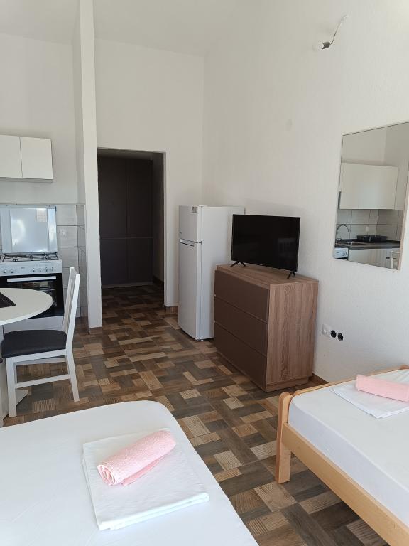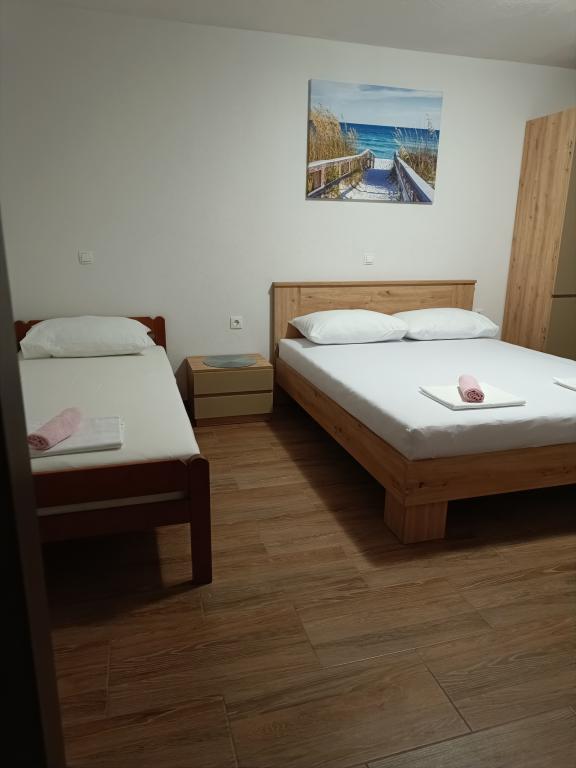 Leonard Apartments Wij zijn gevestigd in het kleine en rustige stadje Kustići! Wij bieden nieuwe en volledig uitgeruste appartementen met parkeergelegenheid. Elk appartement beschikt over airconditioning, wifi, beddengoed, tv, volledig uitgeruste keuken en terras. Het strand ligt op 20 meter afstand en winkels, restaurants en een bakkerij bevinden zich in de buurt van de appartementen! De stad Novalja ligt op 6 km afstand! Wij hebben ook aanlegsteigers voor boten op 20 meter afstand van het appartement!